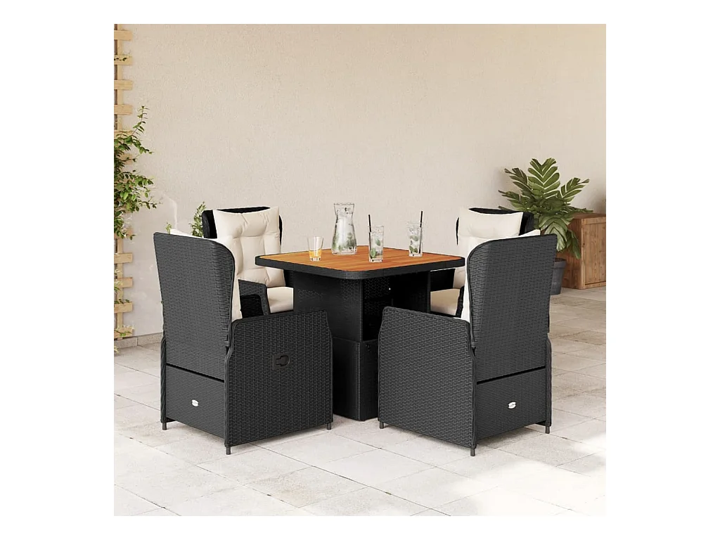 Ensemble à manger de jardin coussins 5pcs Noir Résine tressée
