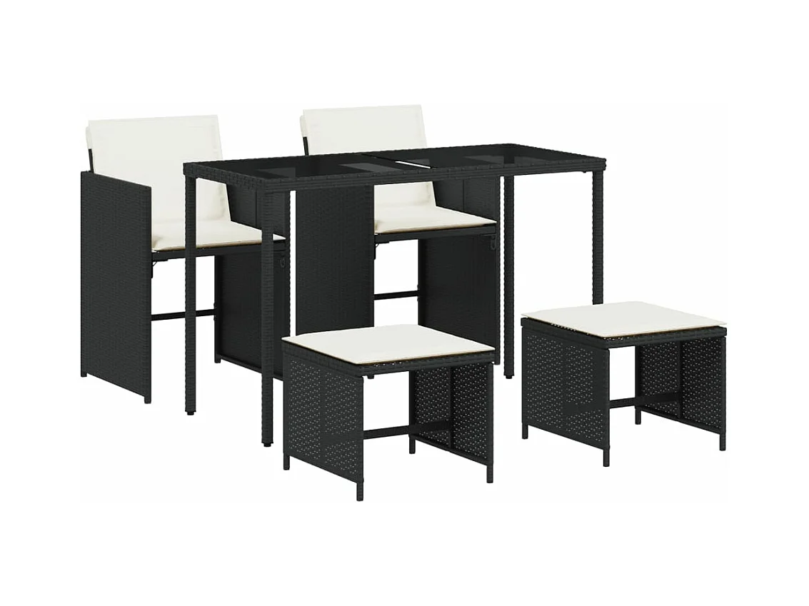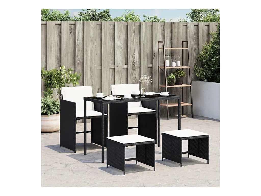 Ensemble à manger de jardin coussins 5pcs Noir Résine tressée