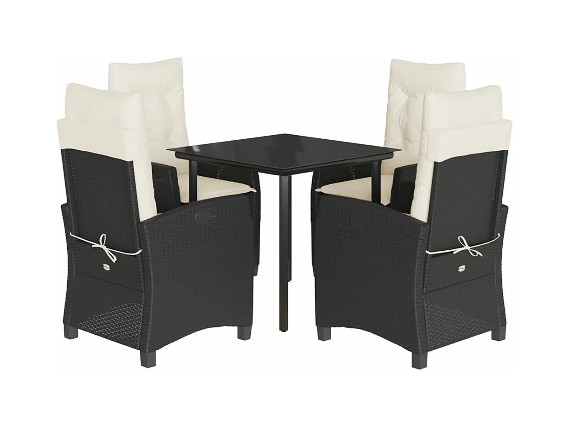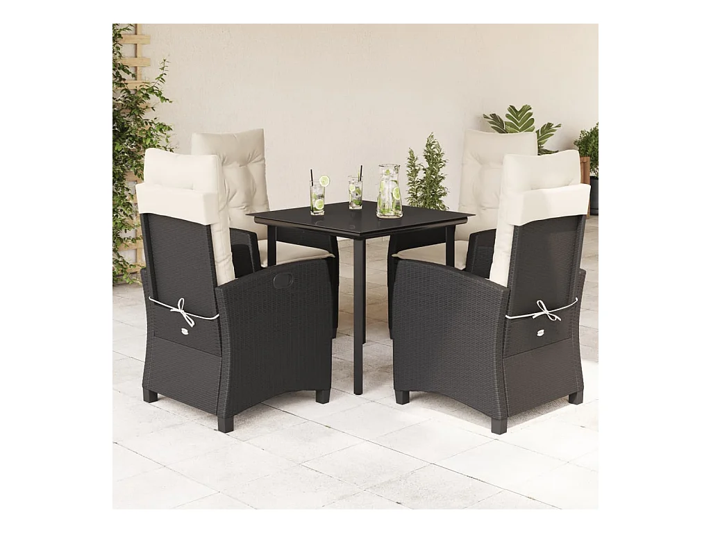 Ensemble à manger de jardin coussins 5pcs Noir Résine tressée