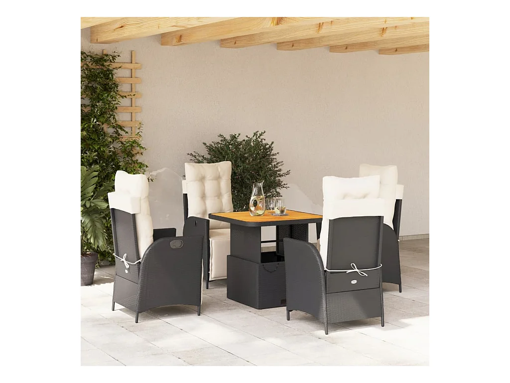 Ensemble à manger de jardin coussins 5pcs Noir Résine tressée