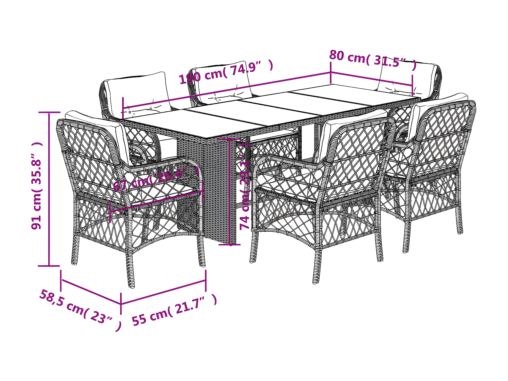 Ensemble à manger de jardin coussins 7 pcs mélange beige rotin