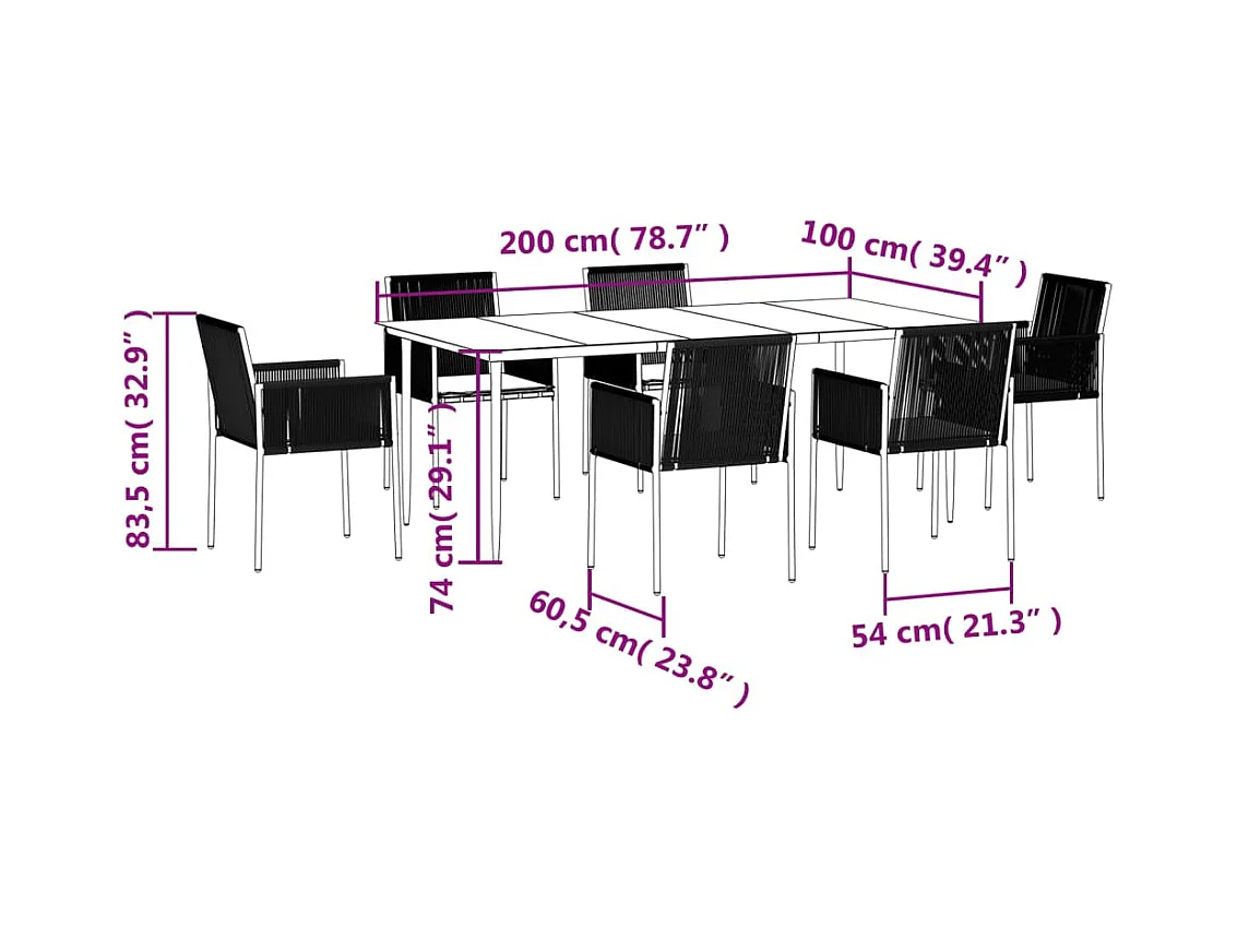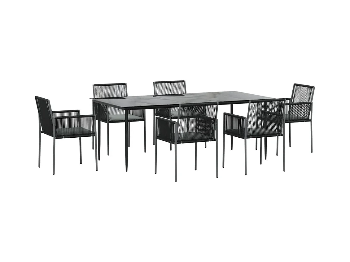 Ensemble à manger de jardin coussins 7 pcs noir rotin et acier