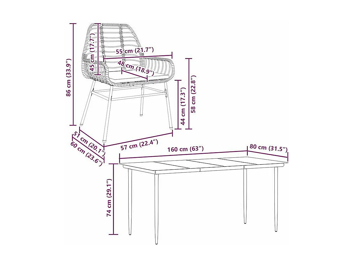 Ensemble à manger de jardin coussins 7pcs noir poly rotin verre