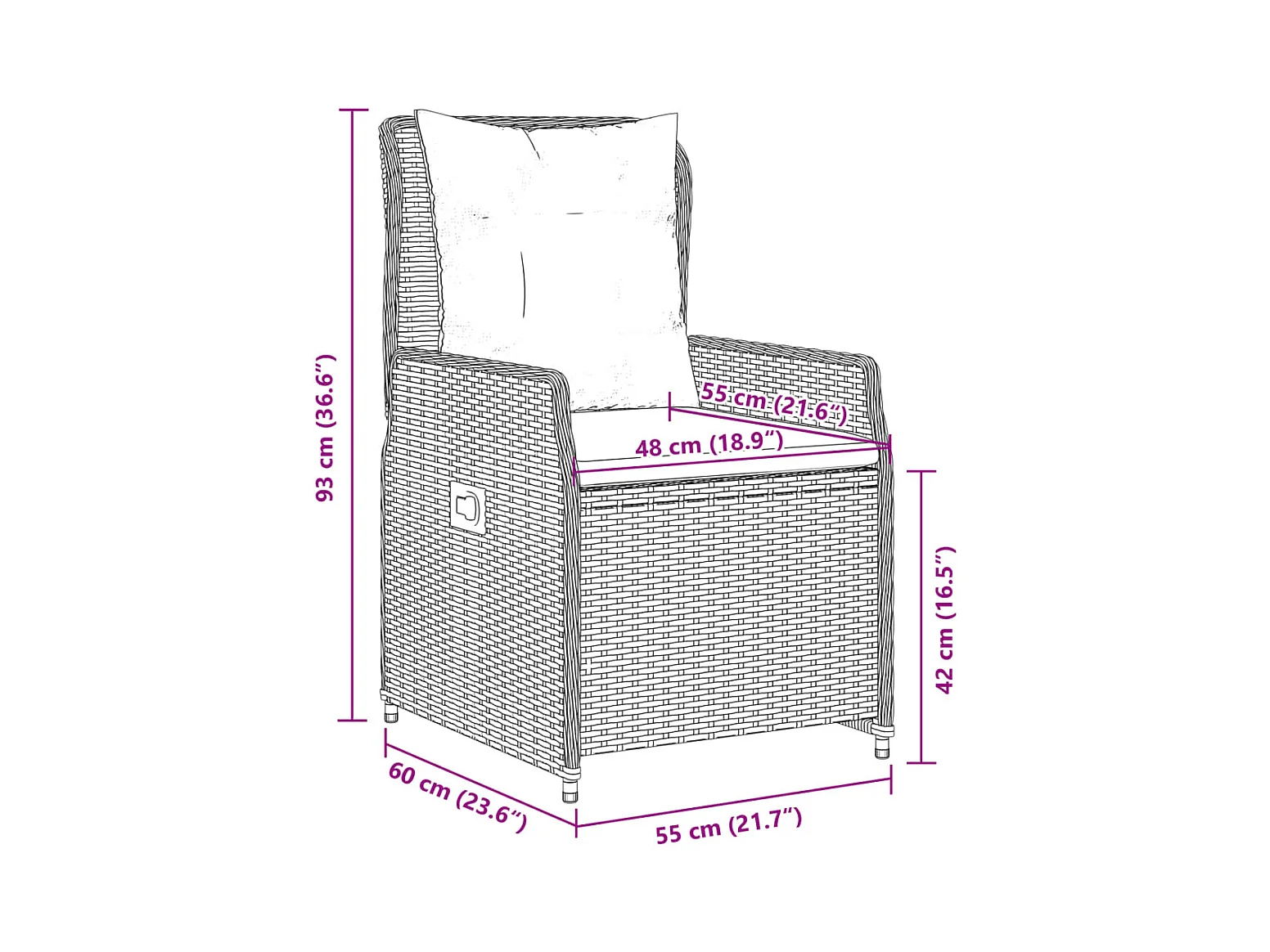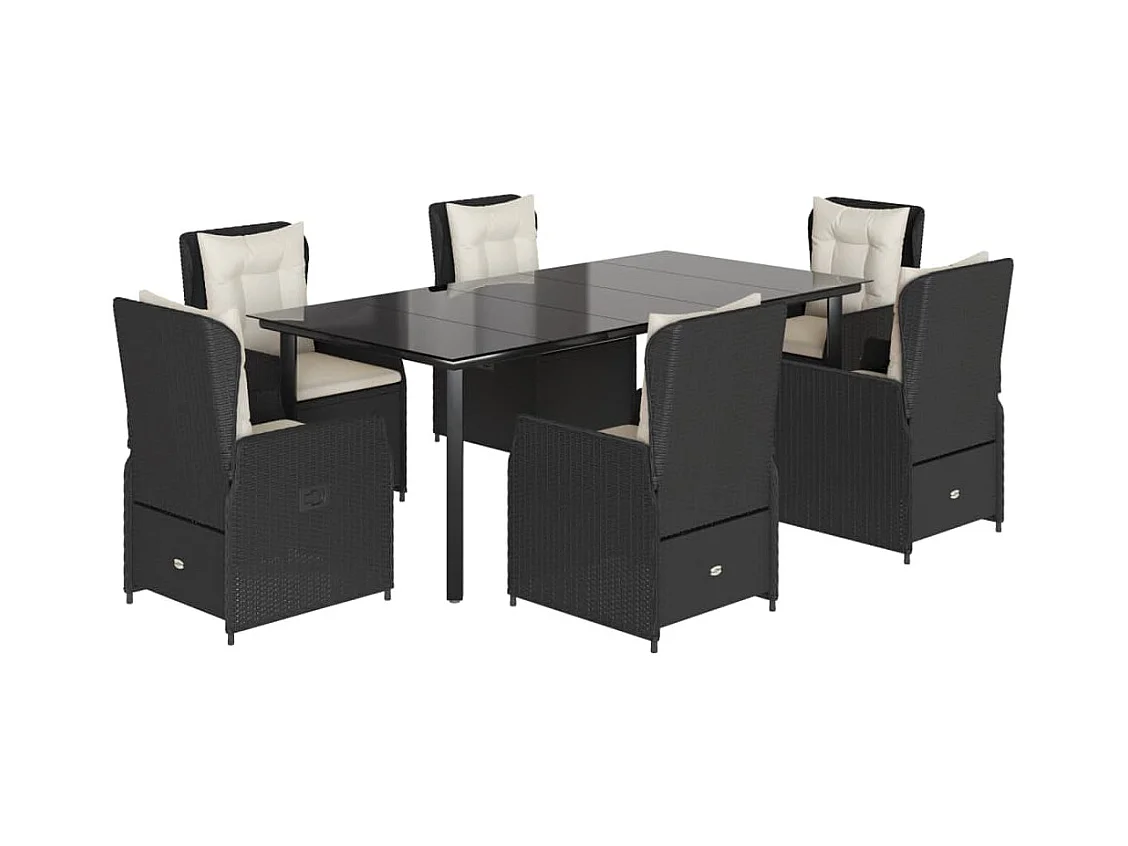 Ensemble à manger de jardin coussins 7pcs Noir Résine tressée