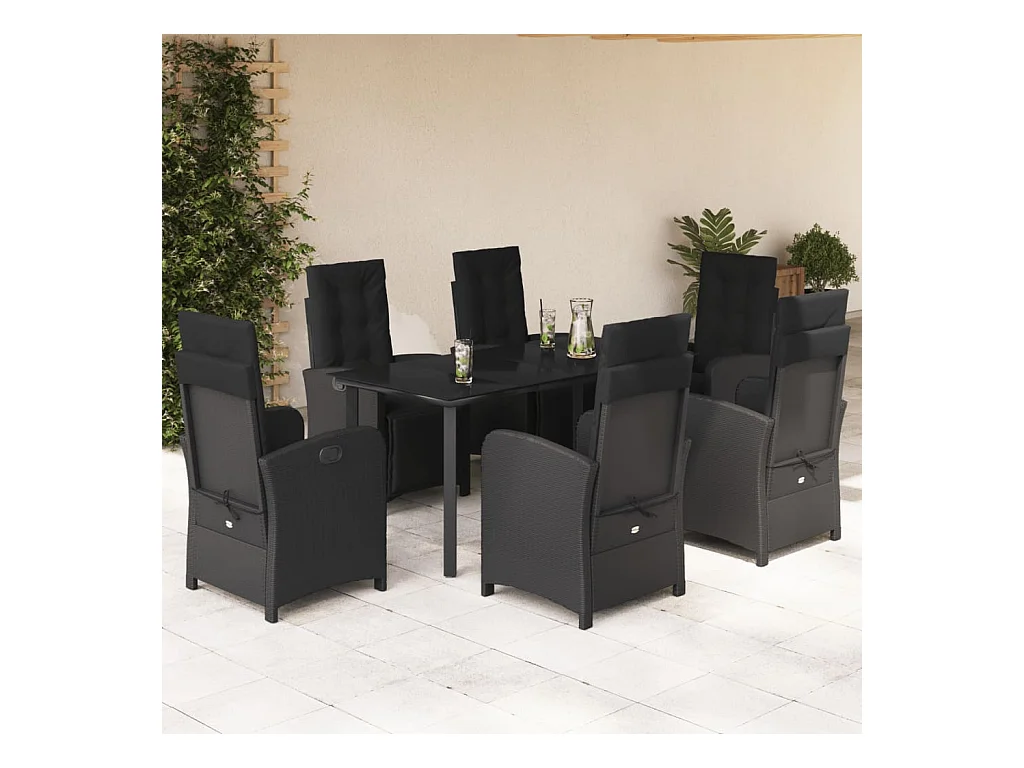 Ensemble à manger de jardin coussins 7pcs Noir Résine tressée