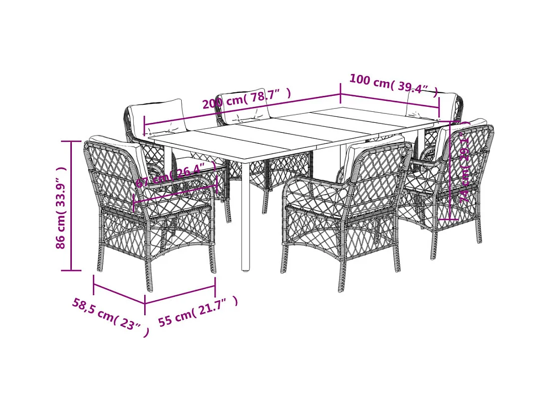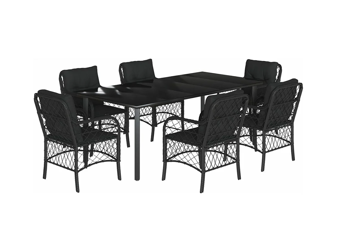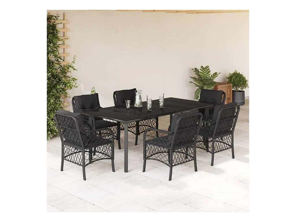 Ensemble à manger de jardin coussins 7pcs Noir Résine tressée