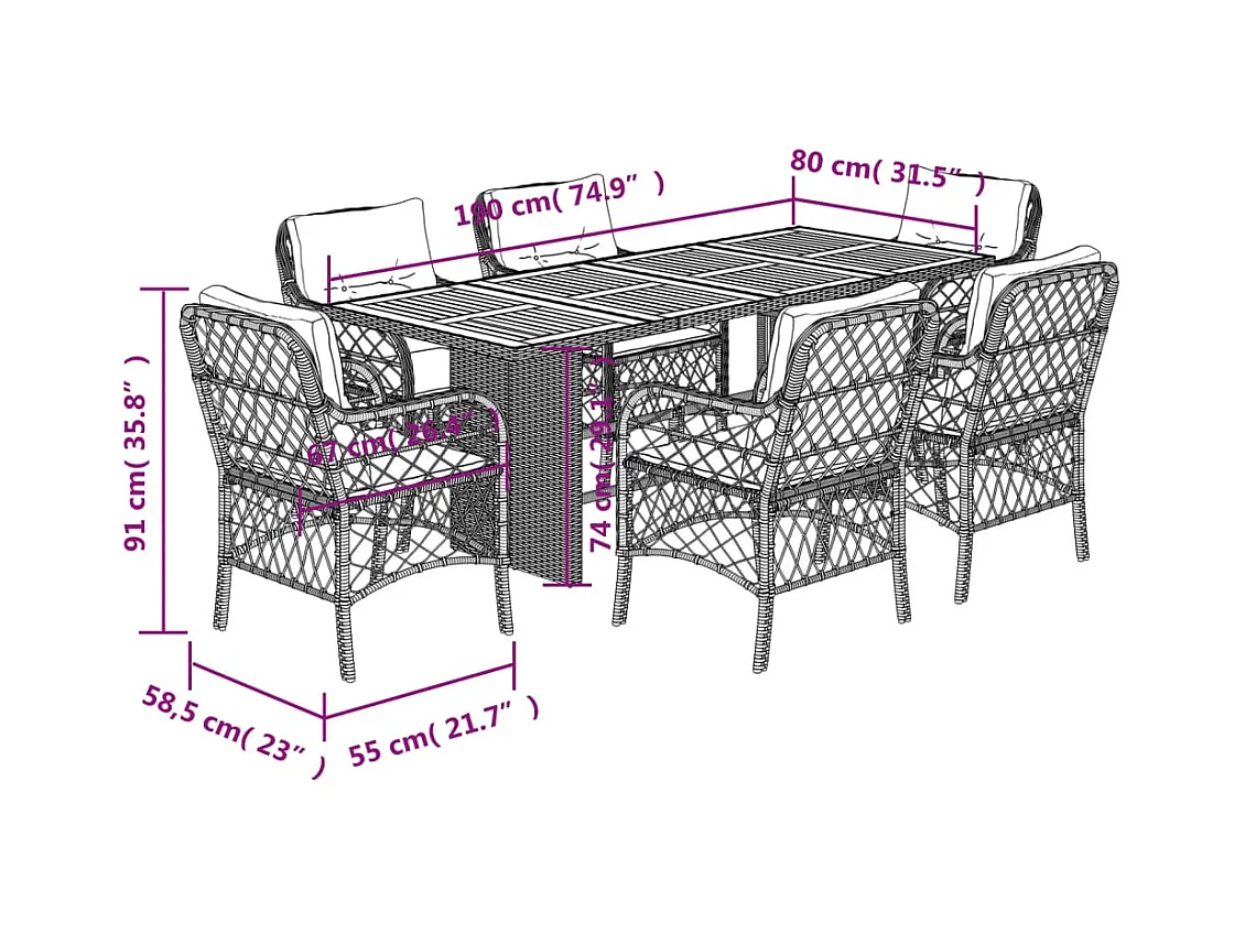 Ensemble à manger de jardin coussins 7pcs Noir Résine tressée