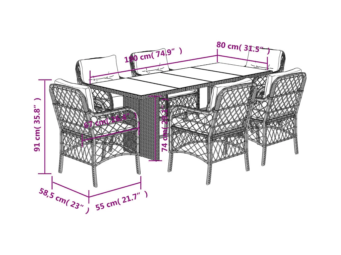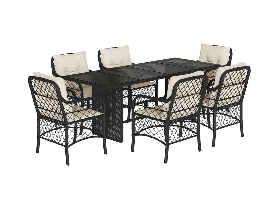Ensemble à manger de jardin coussins 7pcs Noir Résine tressée