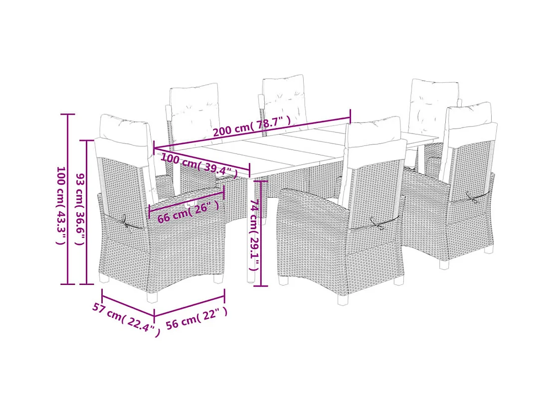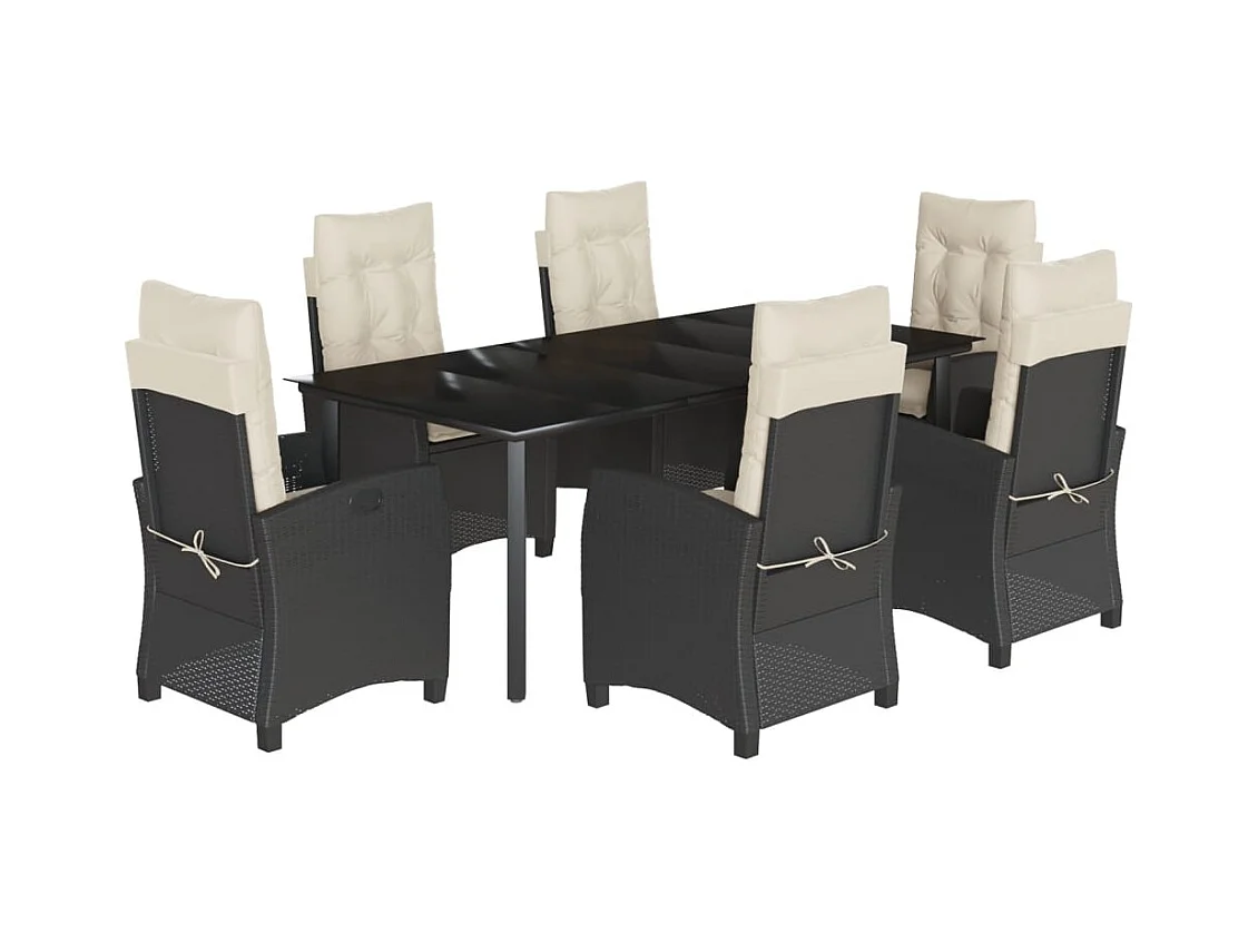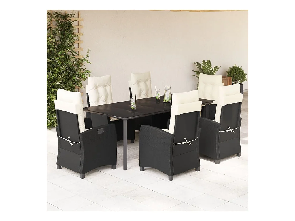 Ensemble à manger de jardin coussins 7pcs Noir Résine tressée