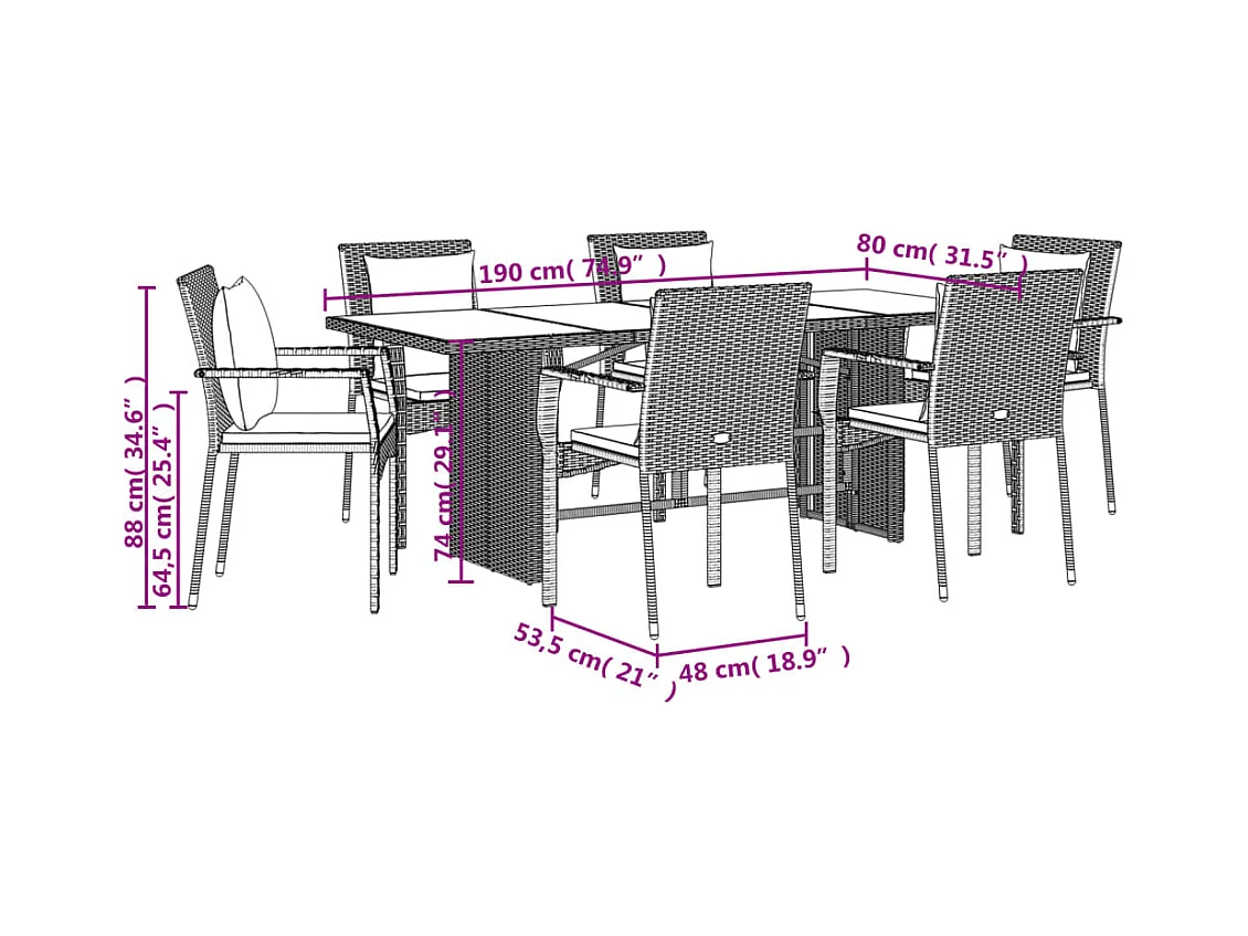 Ensemble à manger de jardin coussins 7pcs Noir Résine tressée