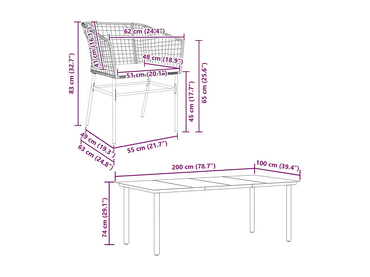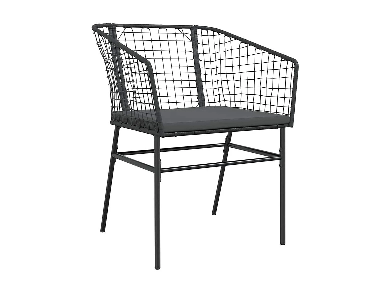 Ensemble à manger de jardin coussins 7pièces noir poly rotin verre