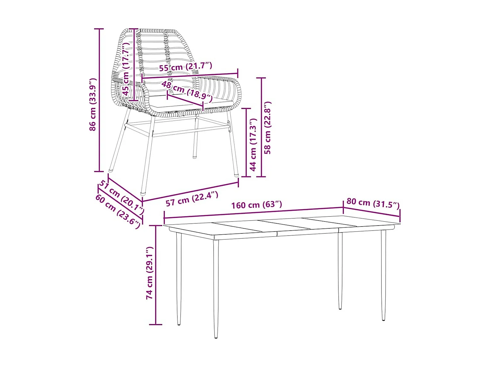 Ensemble à manger de jardin coussins 7pièces noir poly rotin verre