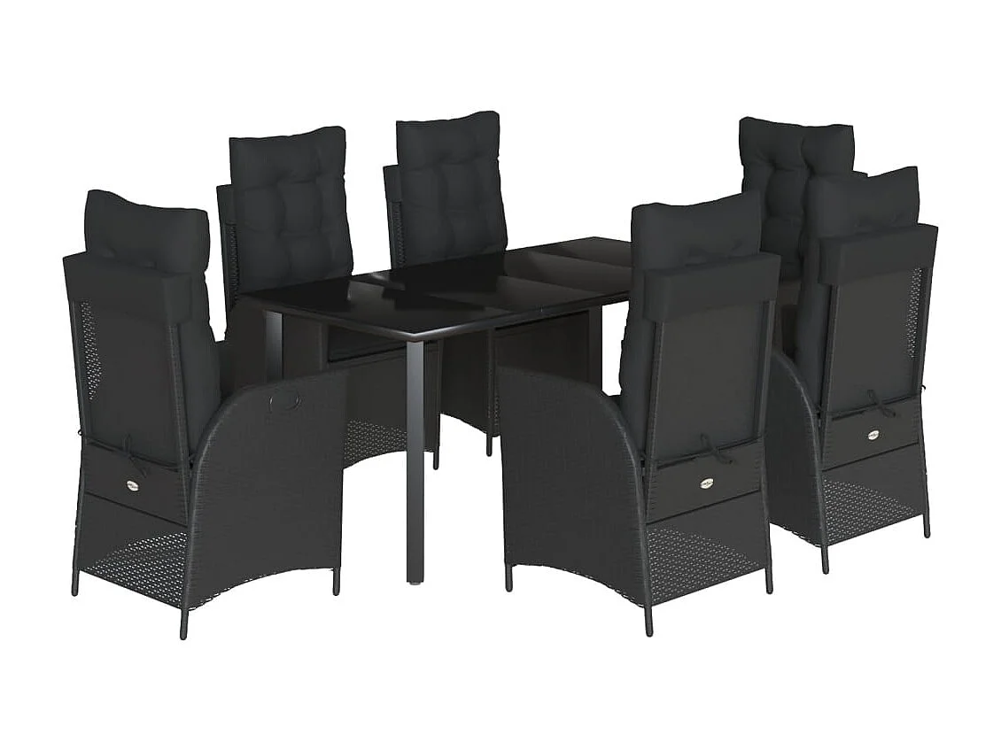 Ensemble à manger de jardin coussins 7pièces Noir Résine tressée