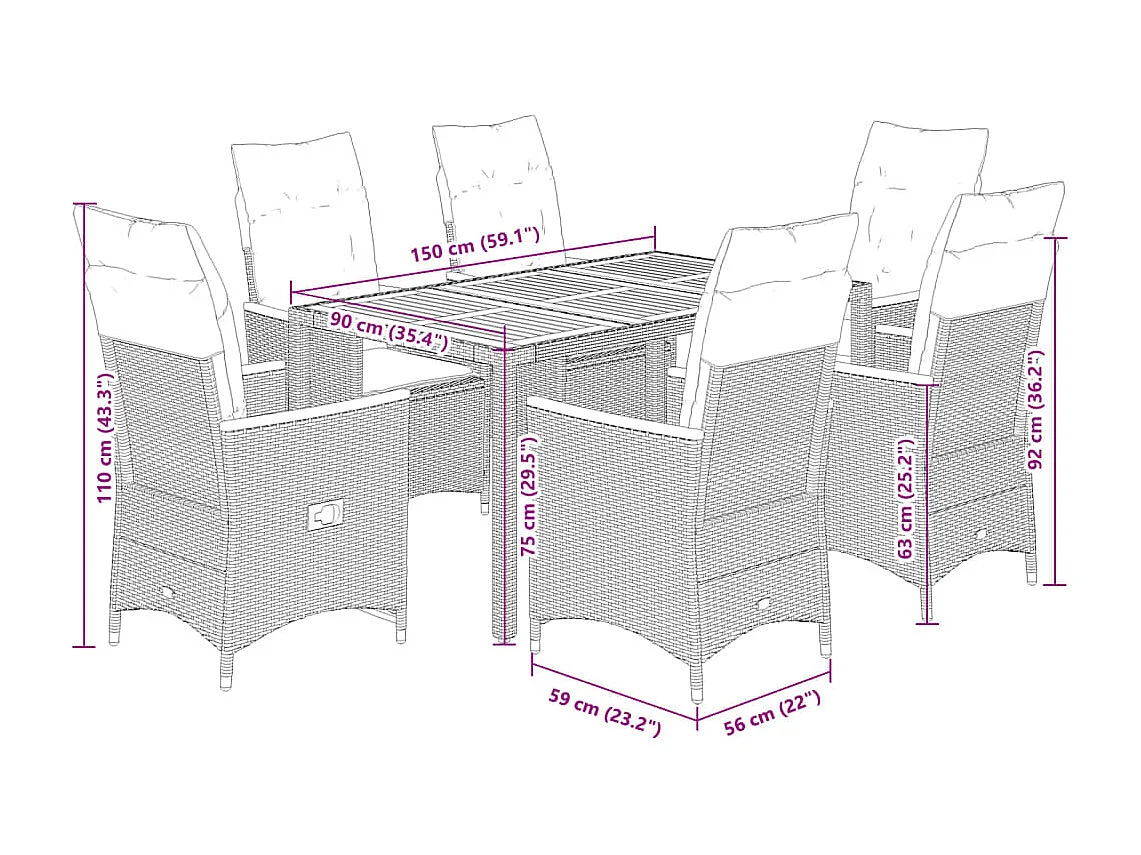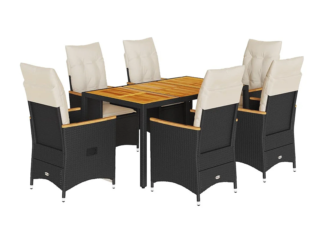 Ensemble à manger de jardin coussins 7pièces Noir Résine tressée