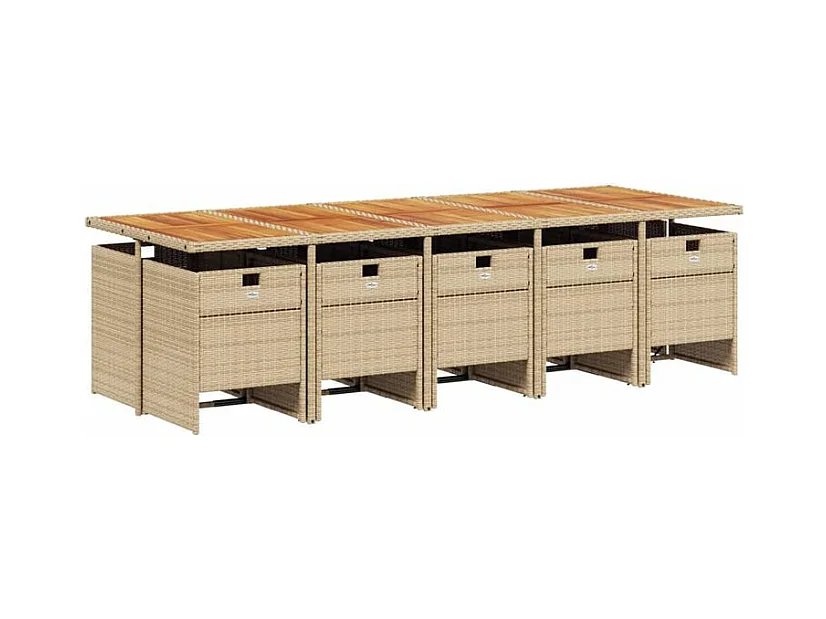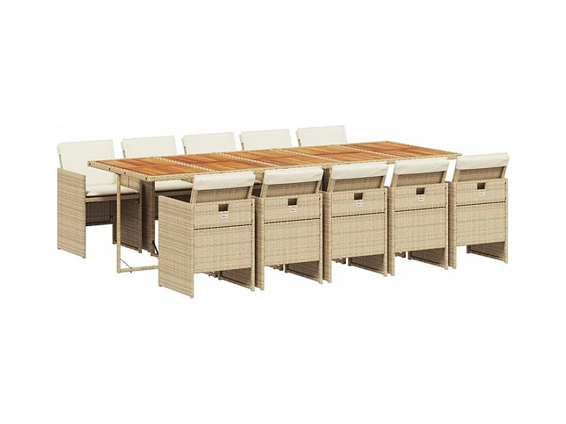 Ensemble à manger de jardin et coussins 11 pcs beige poly rotin