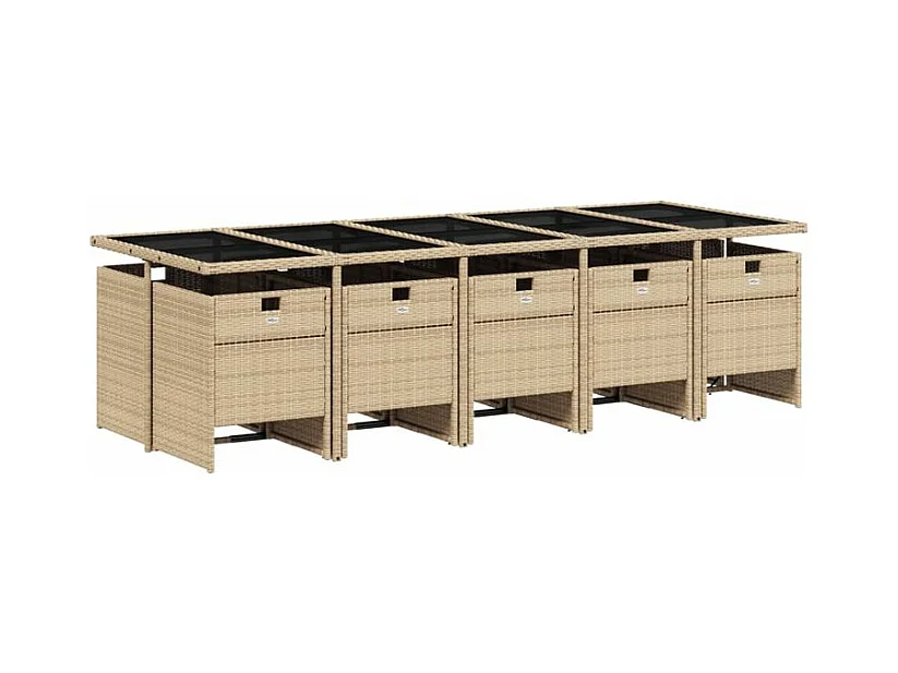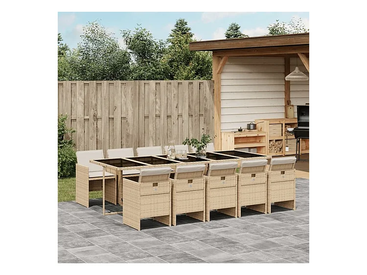 Ensemble à manger de jardin et coussins 11 pcs beige poly rotin