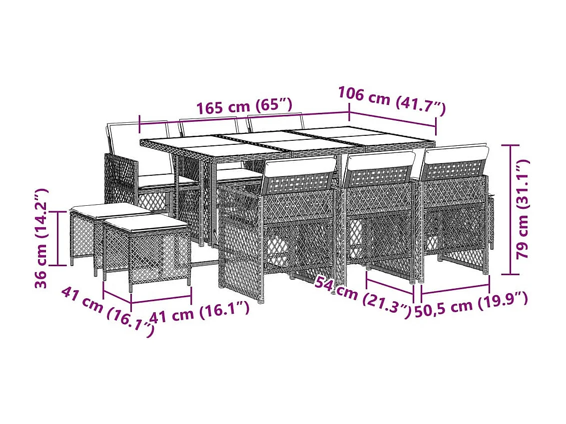 Ensemble à manger de jardin et coussins 11 pcs beige poly rotin