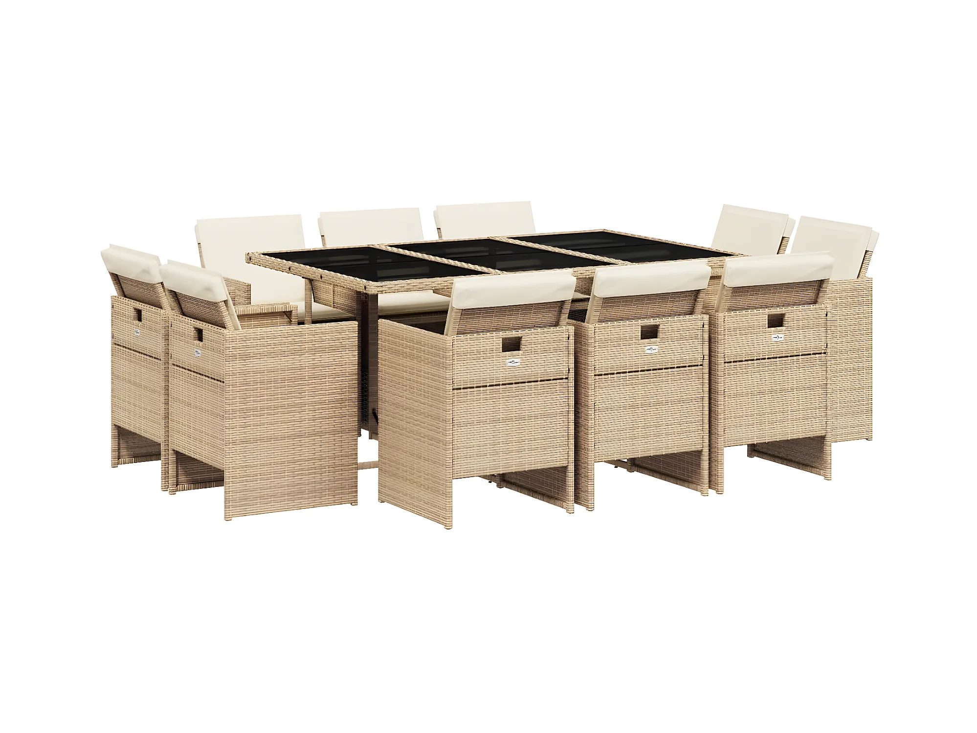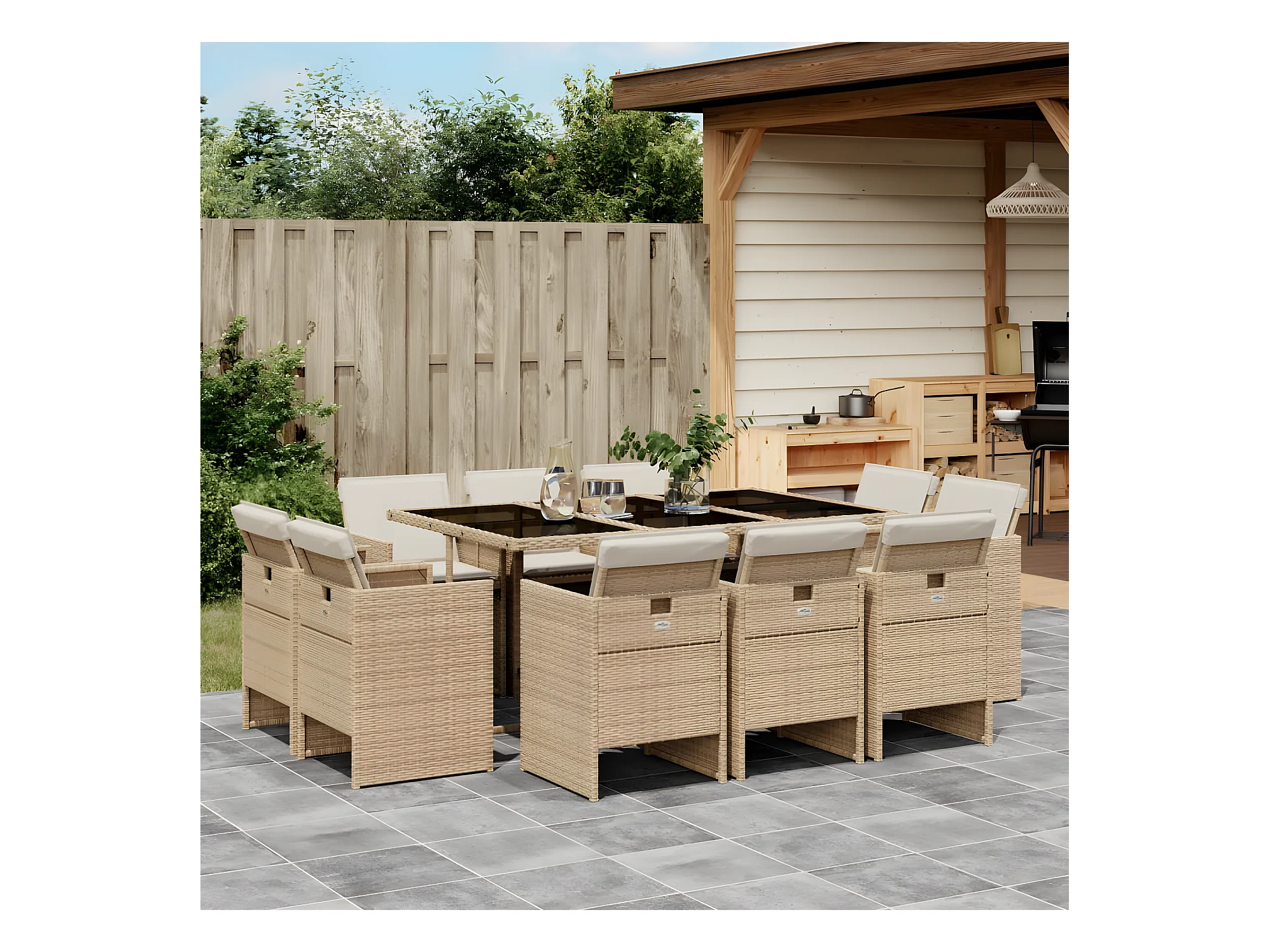 Ensemble à manger de jardin et coussins 11 pcs beige poly rotin