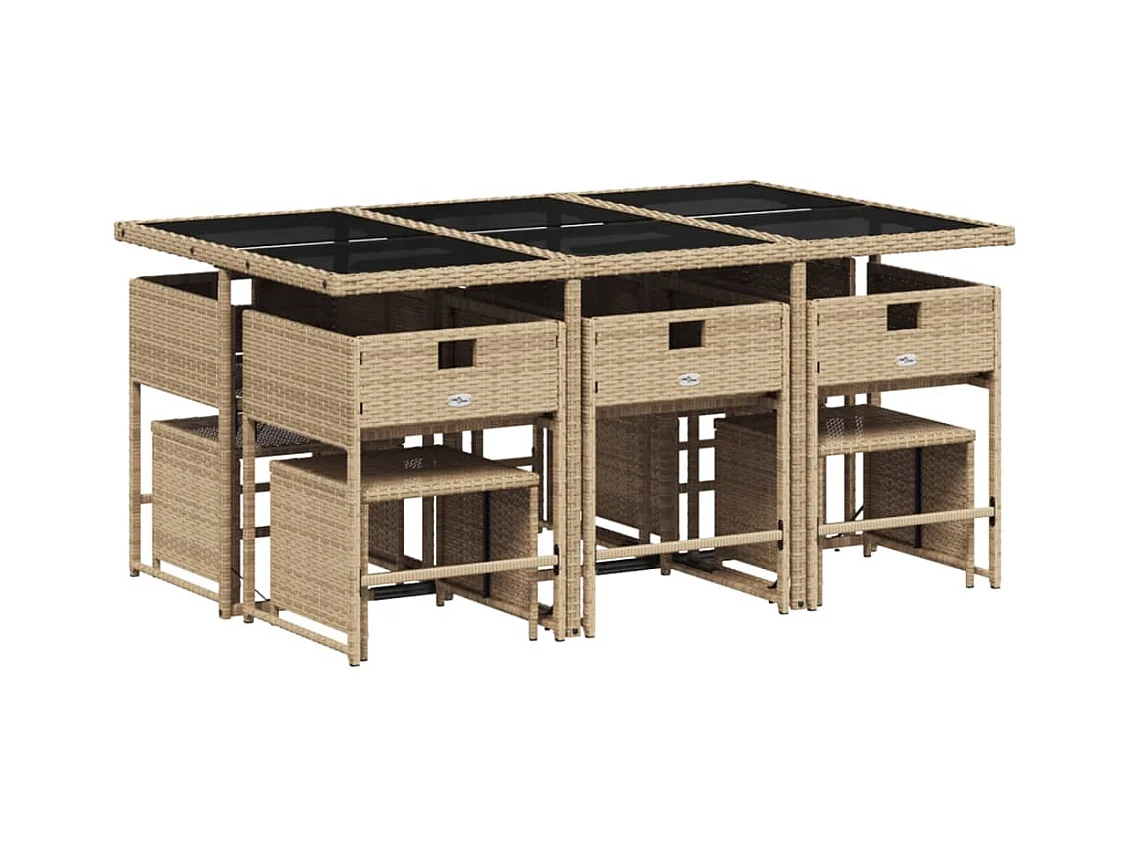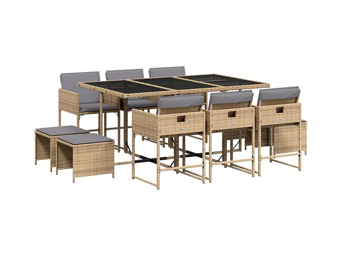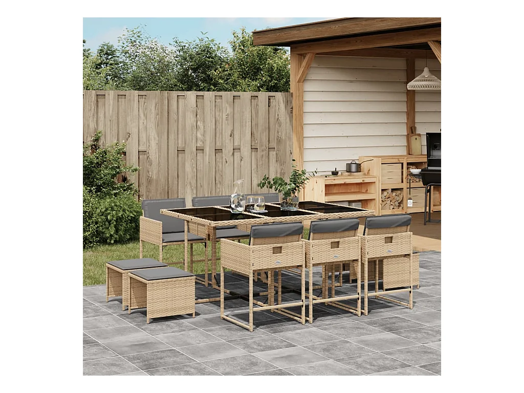 Ensemble à manger de jardin et coussins 11 pcs mélange beige