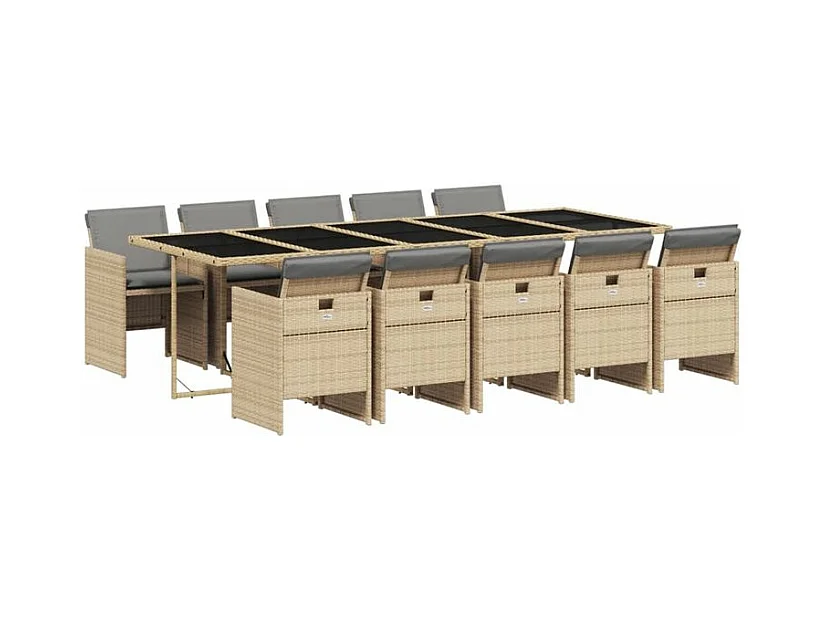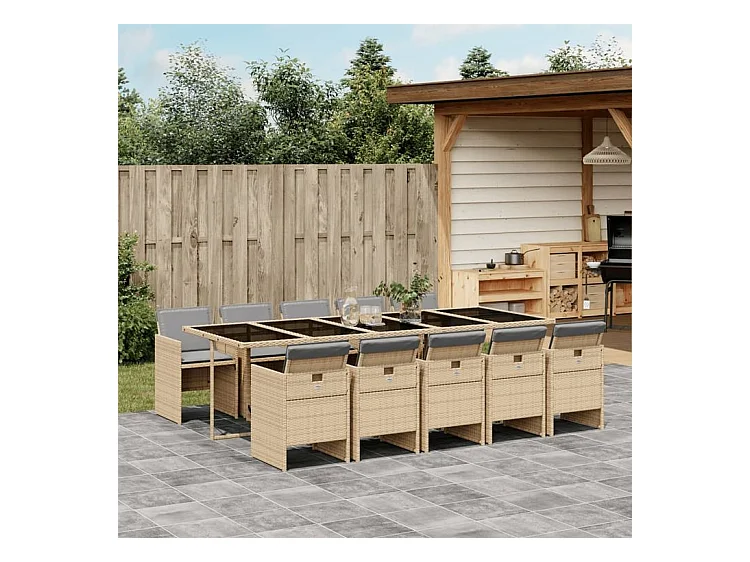 Ensemble à manger de jardin et coussins 11 pcs mélange beige