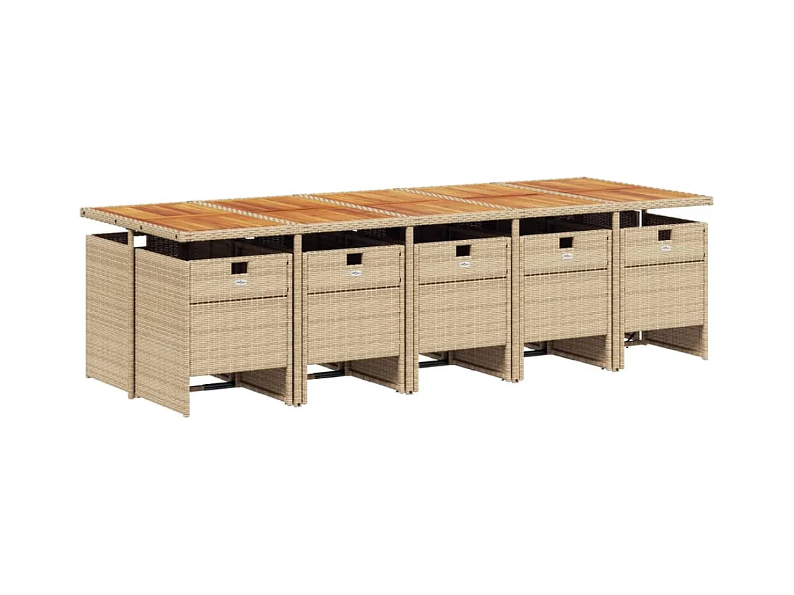 Ensemble à manger de jardin et coussins 11 pièces beige poly rotin