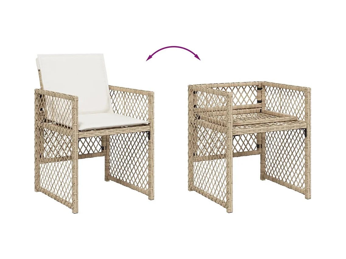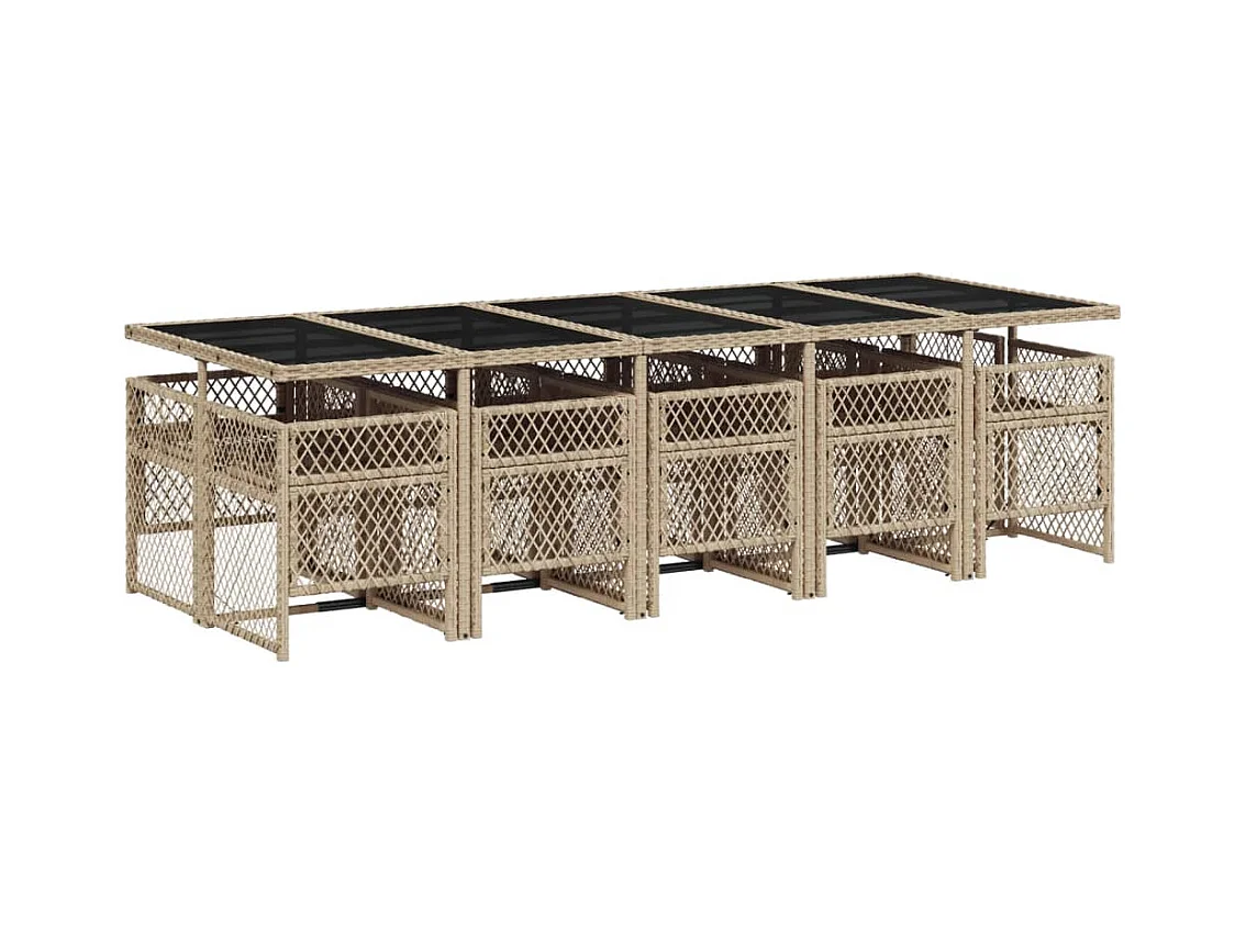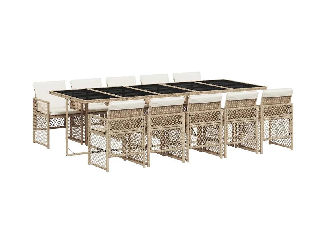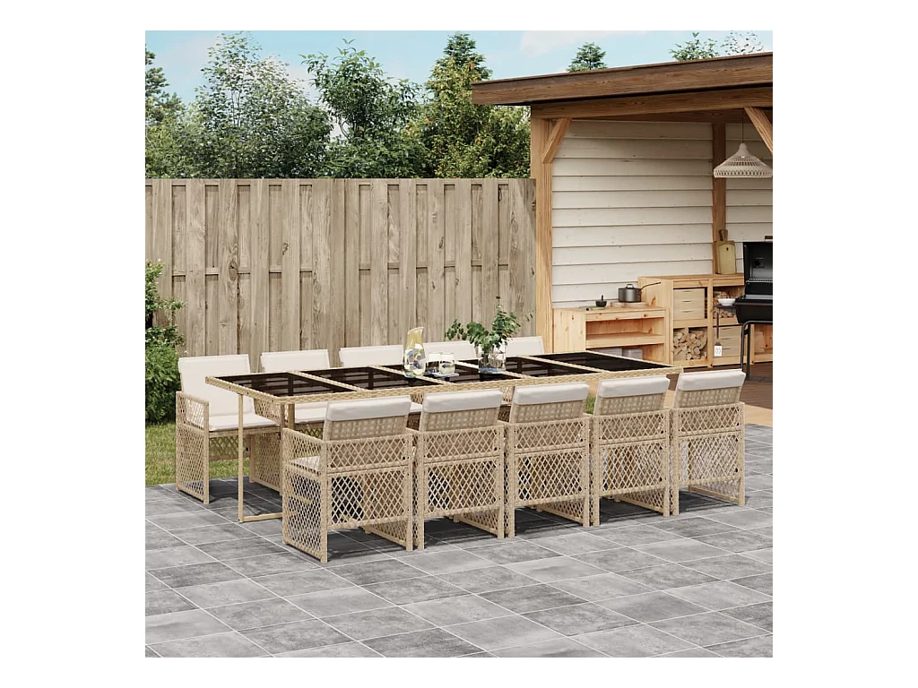 Ensemble à manger de jardin et coussins 11 pièces beige poly rotin