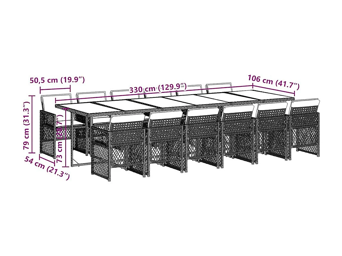 Ensemble à manger de jardin et coussins 13 pcs beige