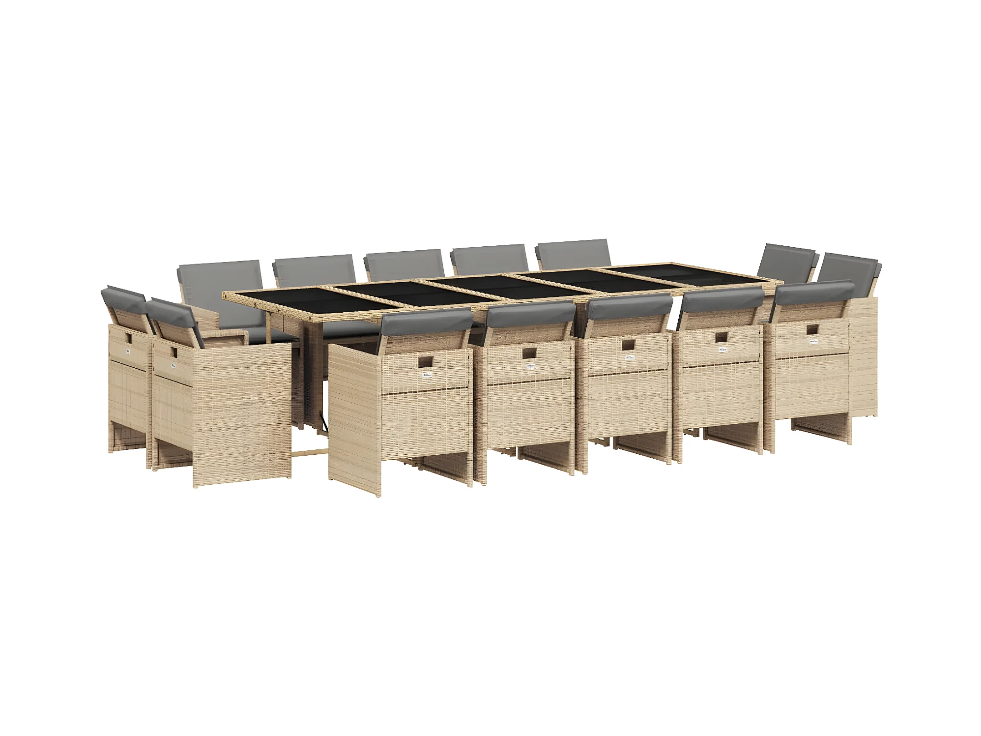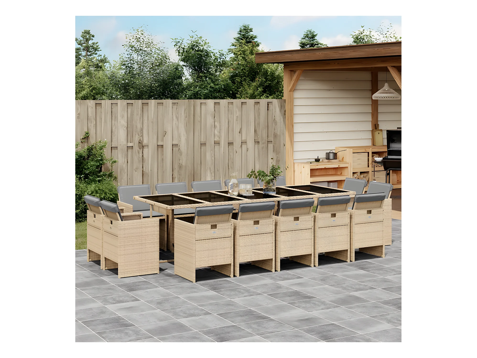 Ensemble à manger de jardin et coussins 15 pcs mélange beige