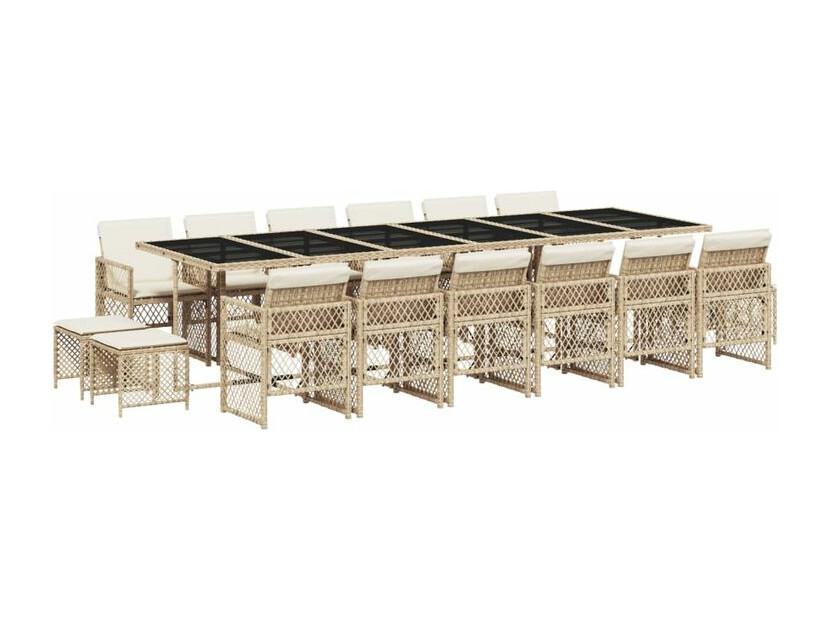 Ensemble à manger de jardin et coussins 17 pcs beige