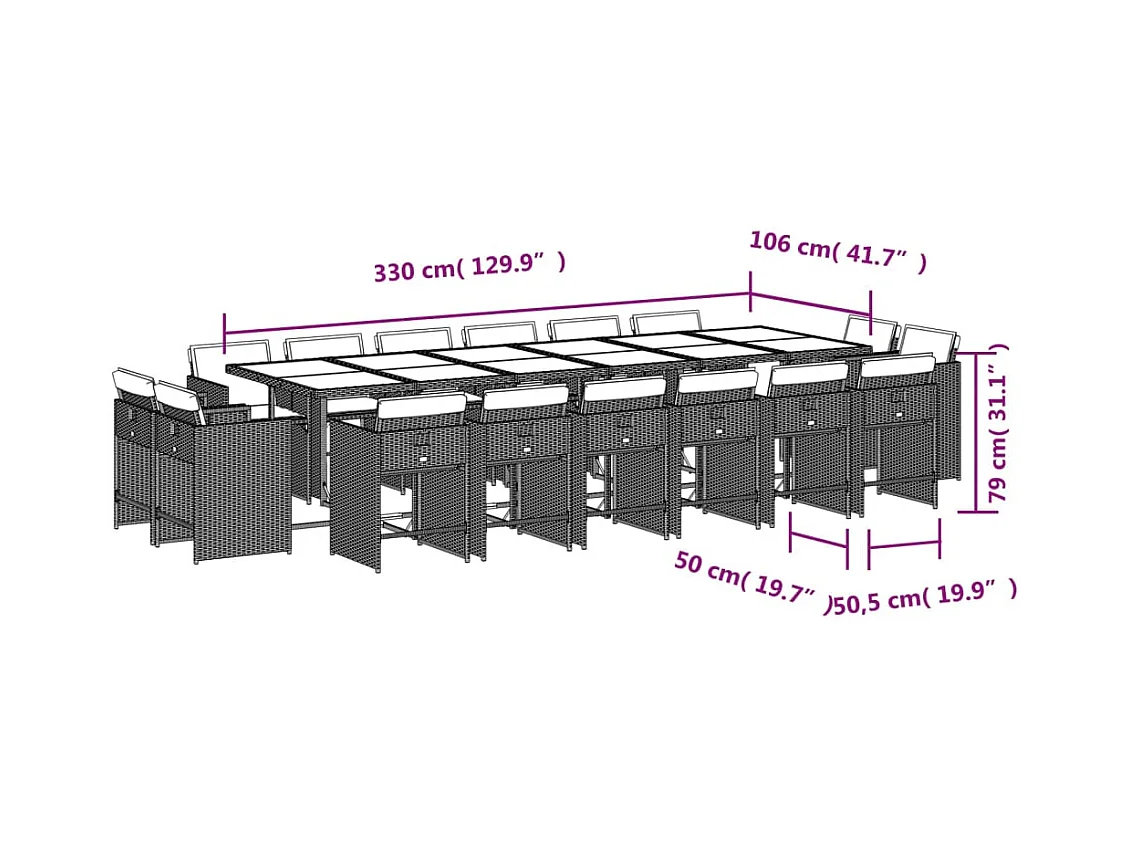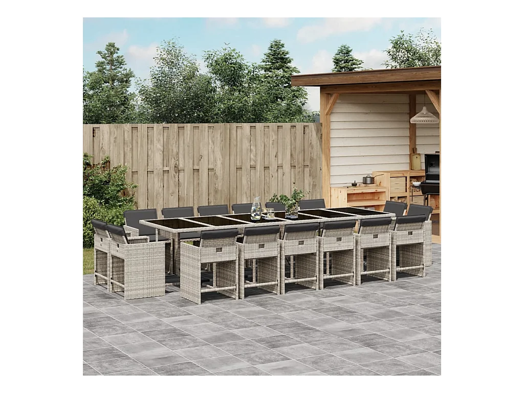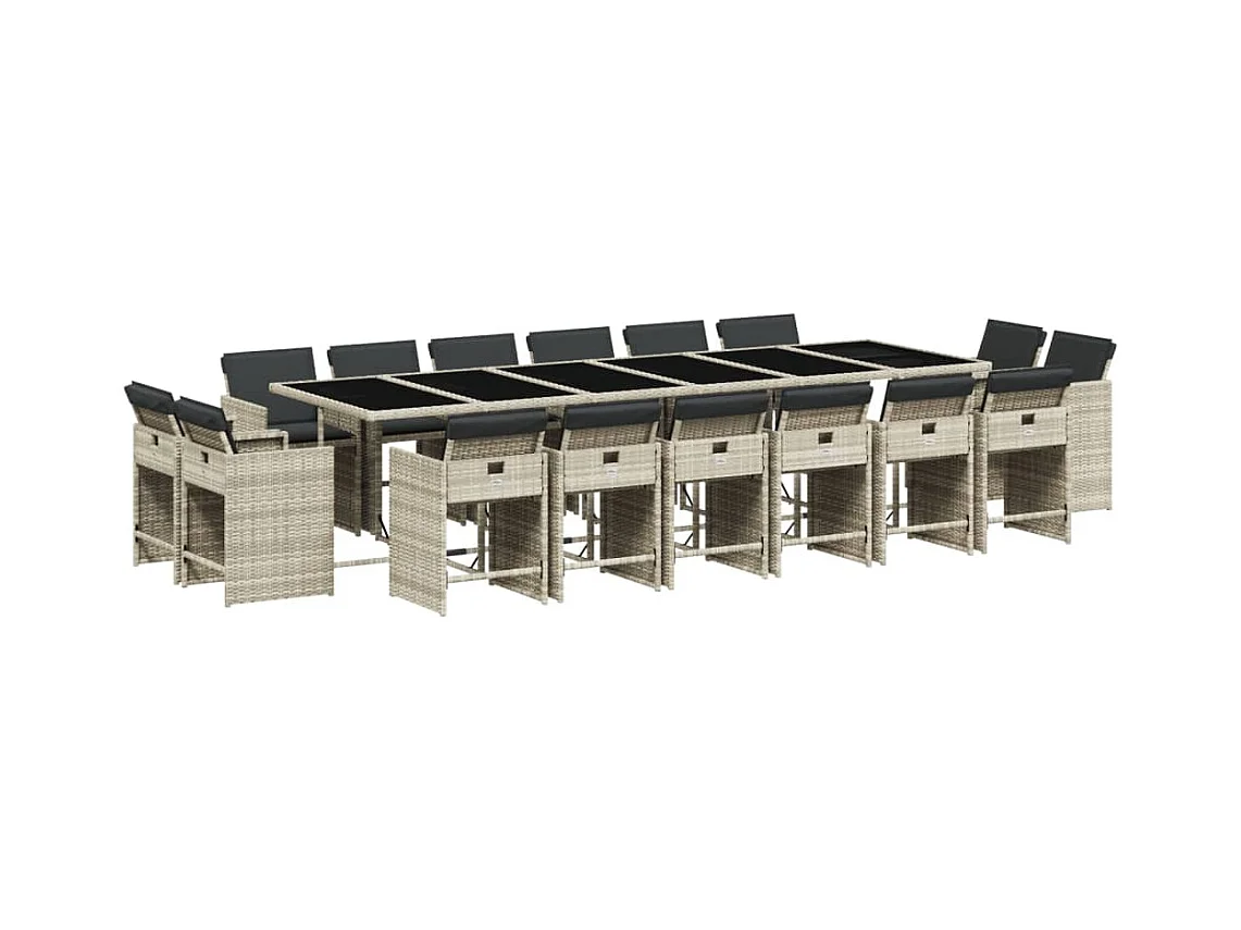 Ensemble à manger de jardin et coussins 17 pcs gris clair rotin