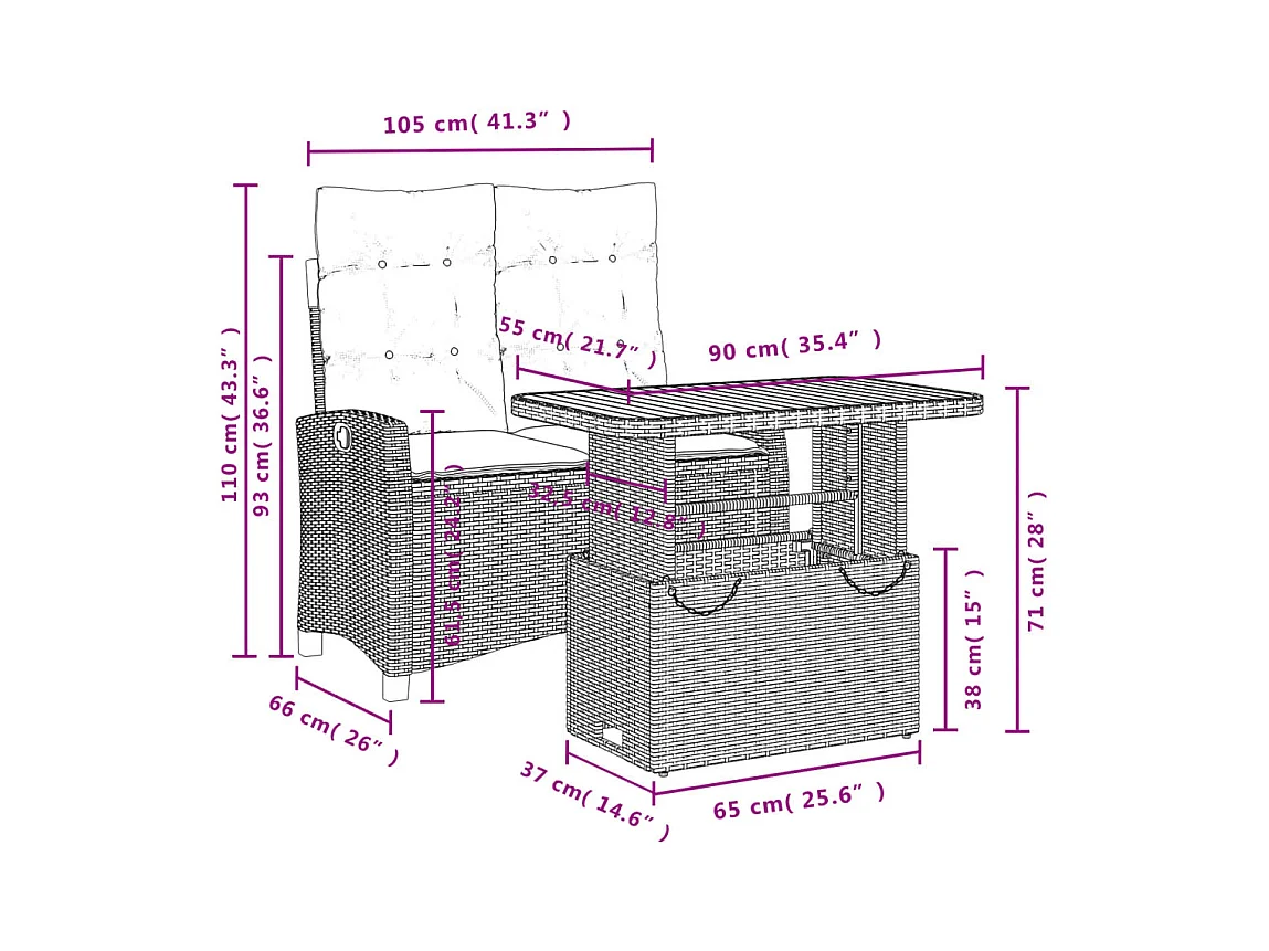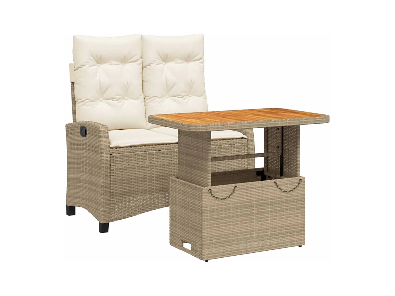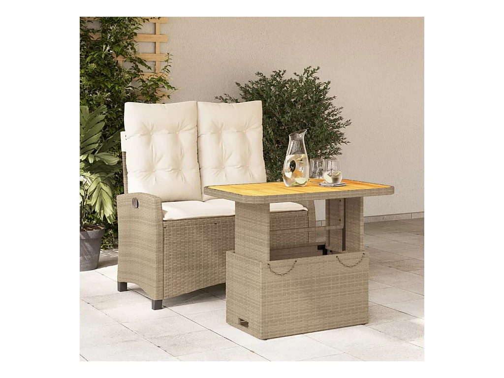 Ensemble à manger de jardin et coussins 2 pcs beige poly rotin
