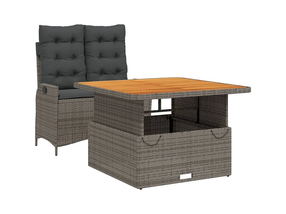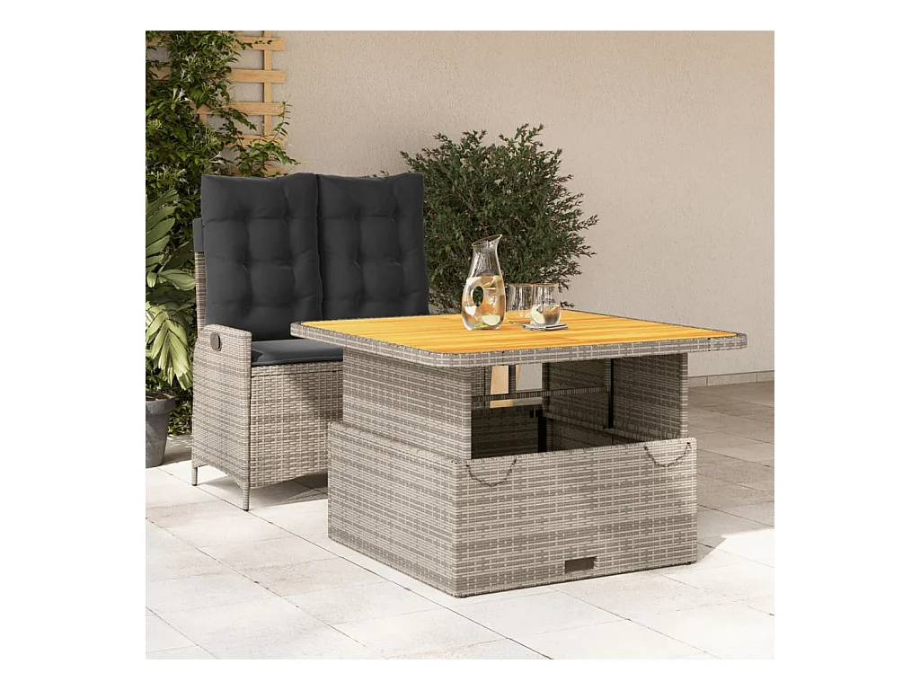 Ensemble à manger de jardin et coussins 2 pcs gris rotin
