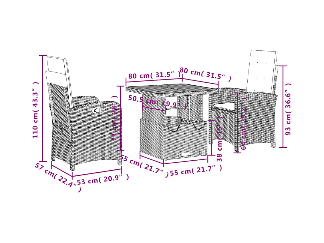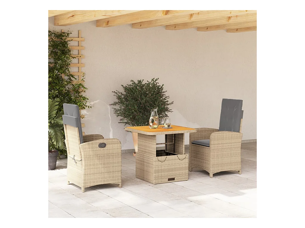 Ensemble à manger de jardin et coussins 3 pcs Beige poly rotin