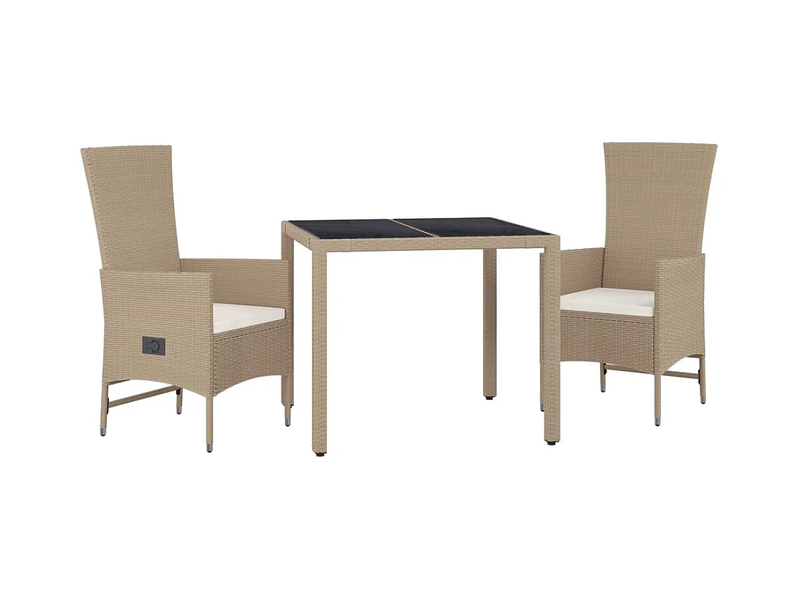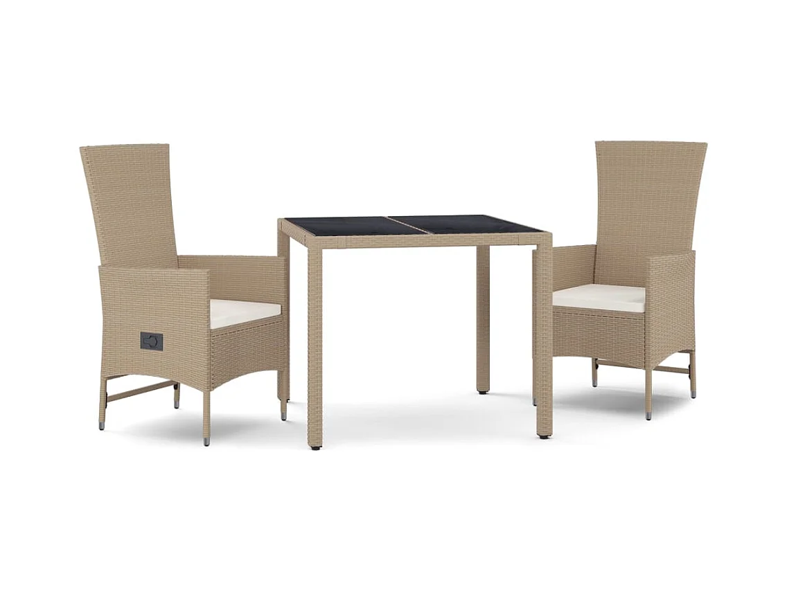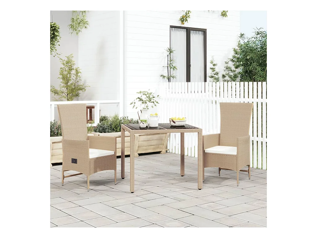 Ensemble à manger de jardin et coussins 3 pcs Beige poly rotin