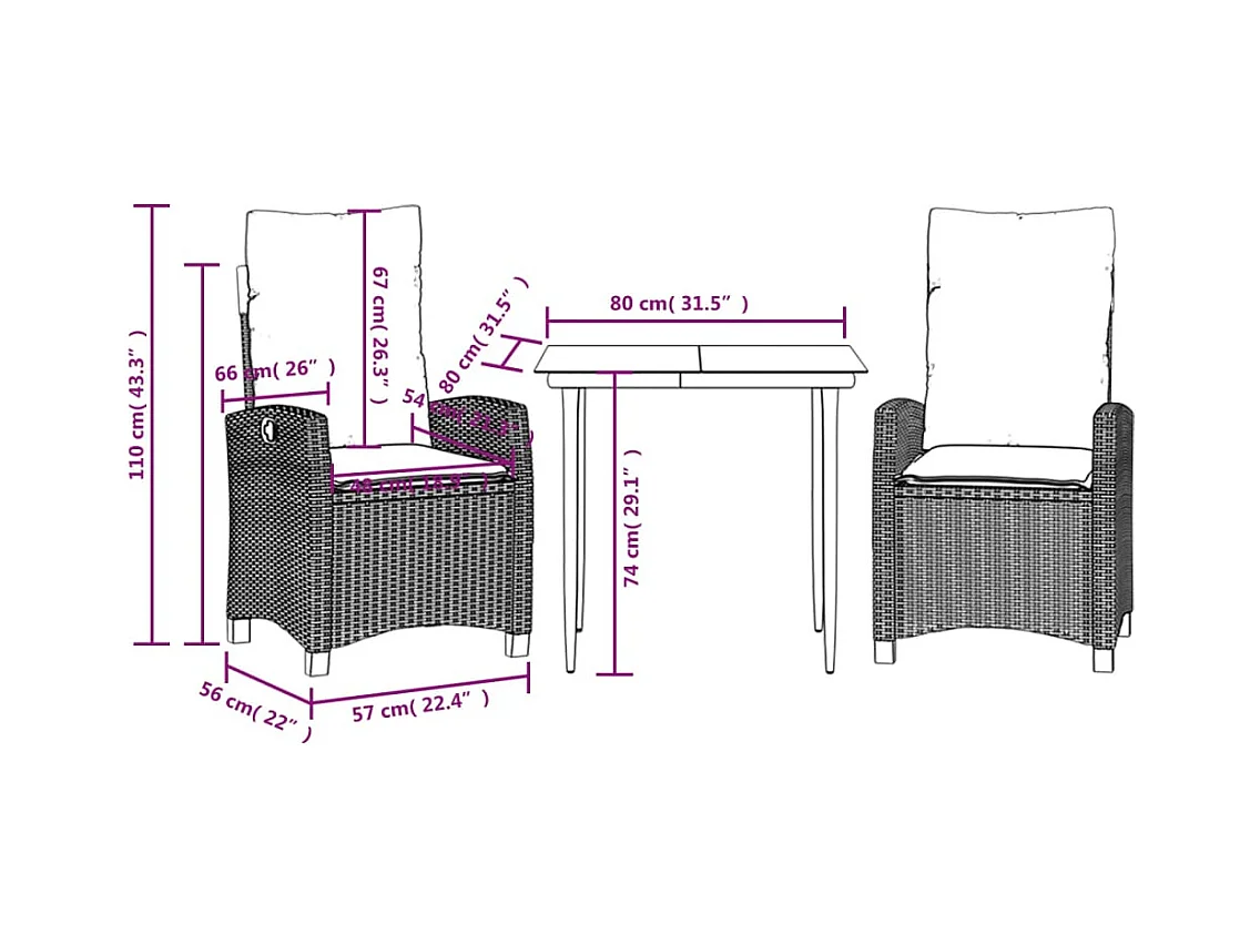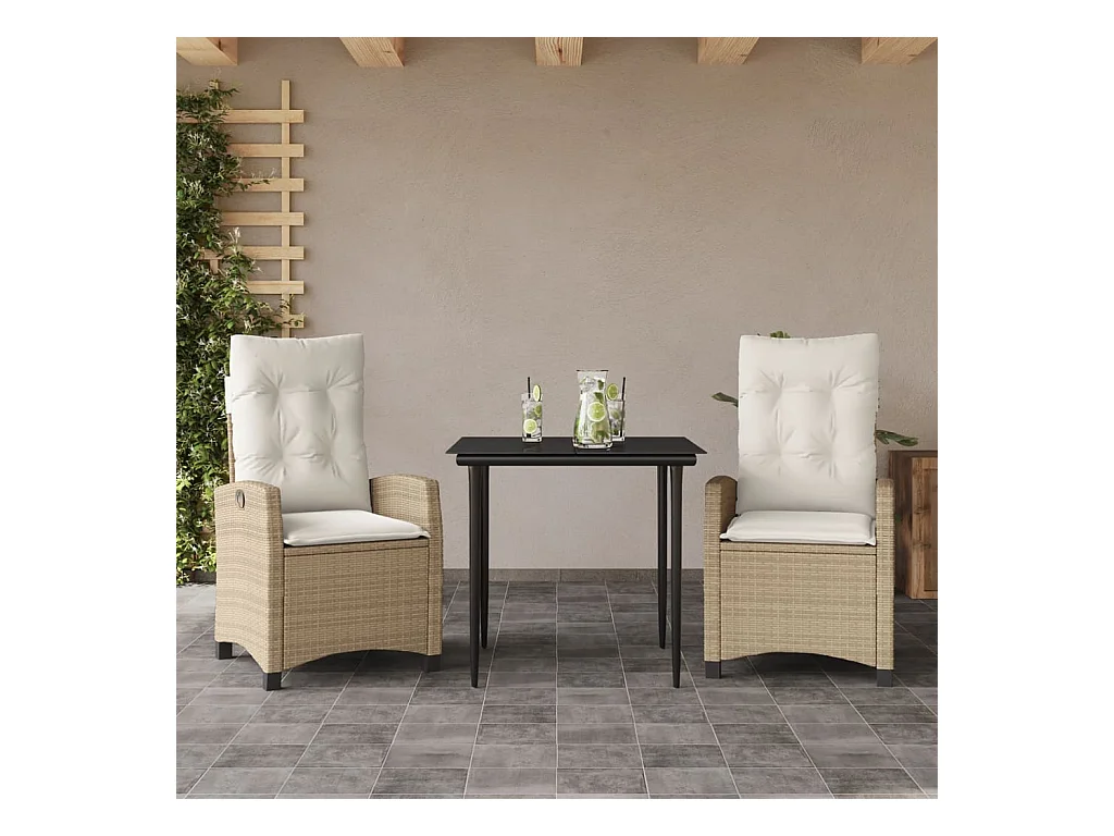 Ensemble à manger de jardin et coussins 3 pcs Beige poly rotin