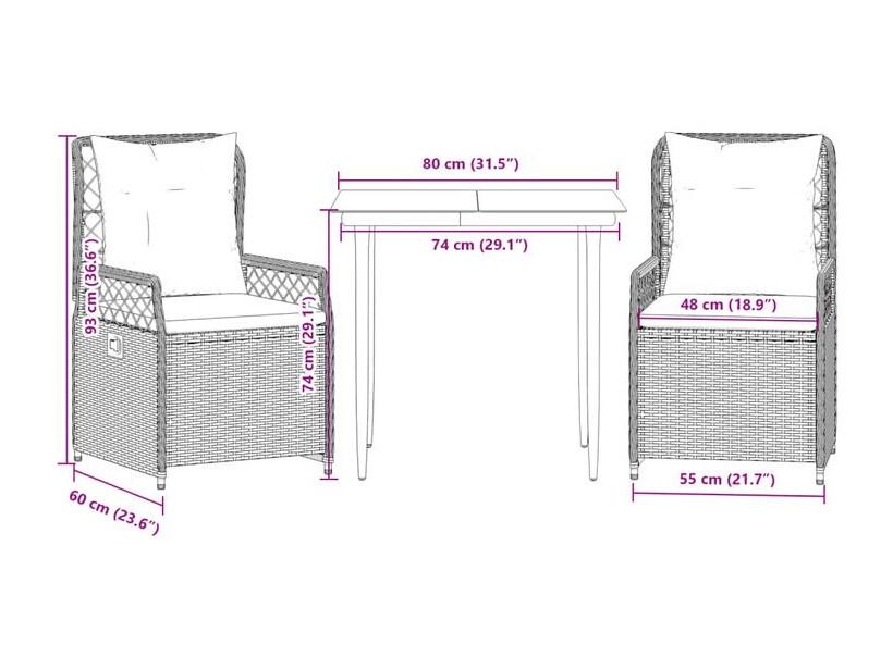 Ensemble à manger de jardin et coussins 3 pcs Beige poly rotin