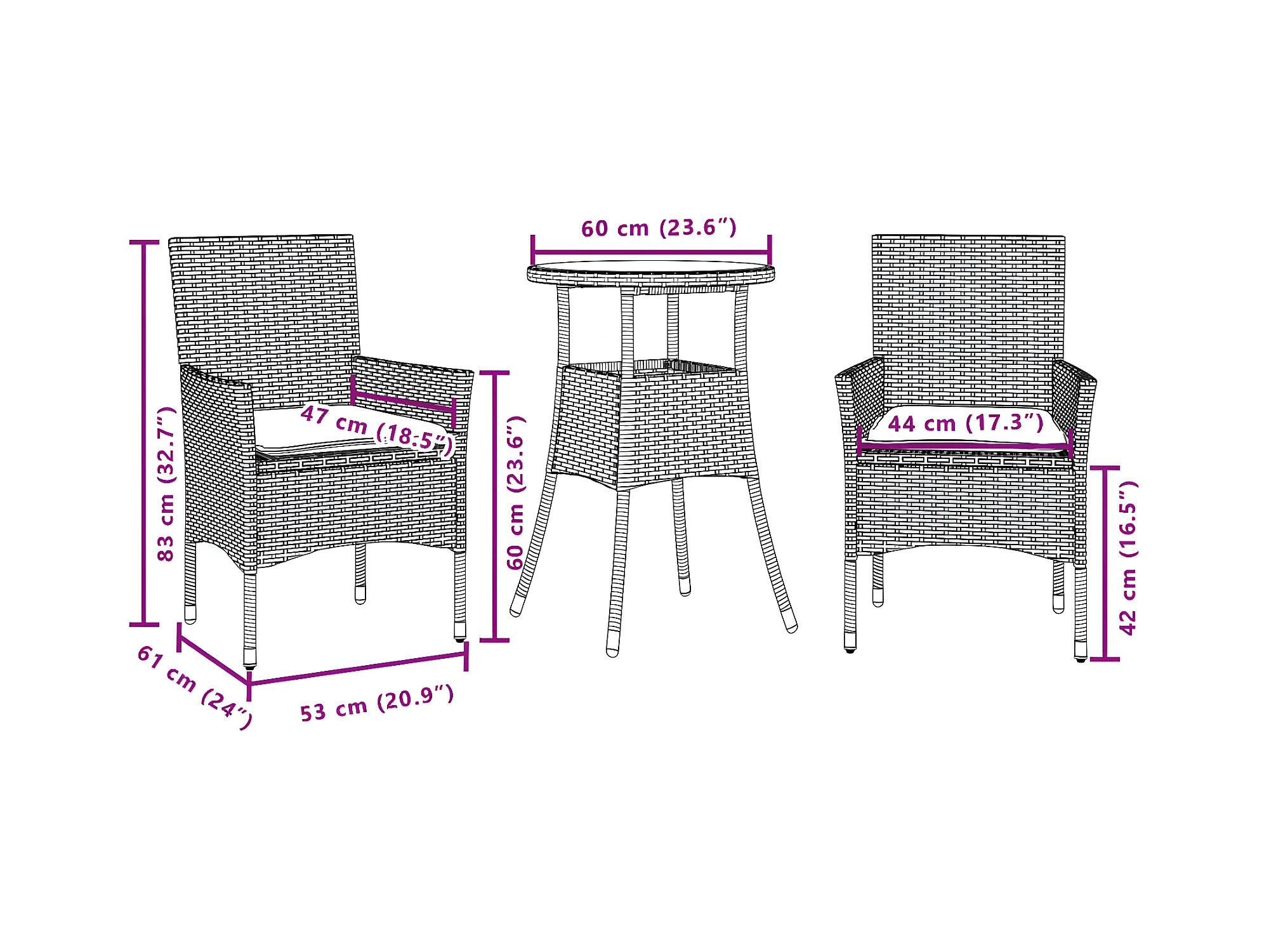 Ensemble à manger de jardin et coussins 3 pcs beige rotin verre