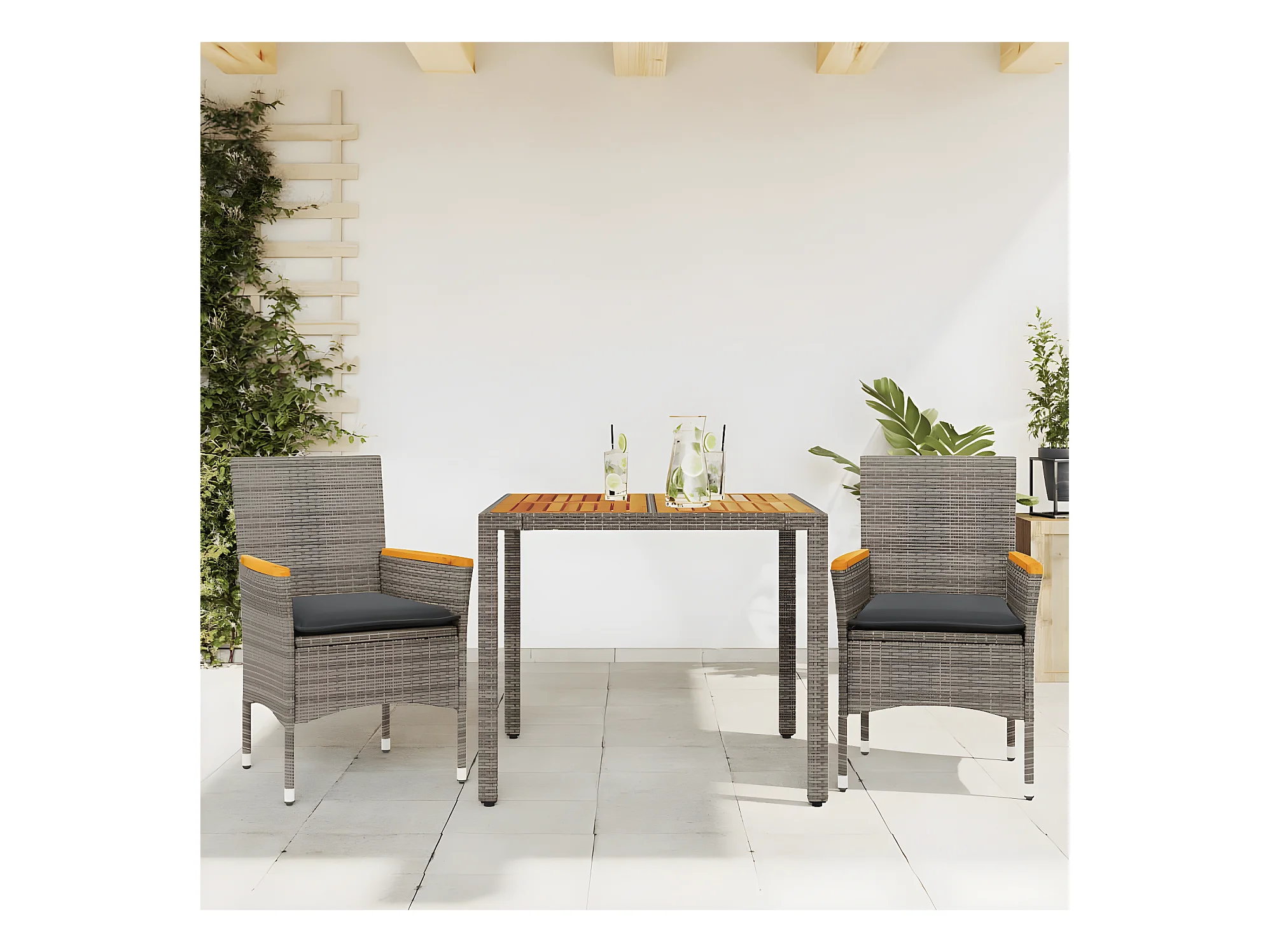Ensemble à manger de jardin et coussins 3 pcs gris rotin acacia