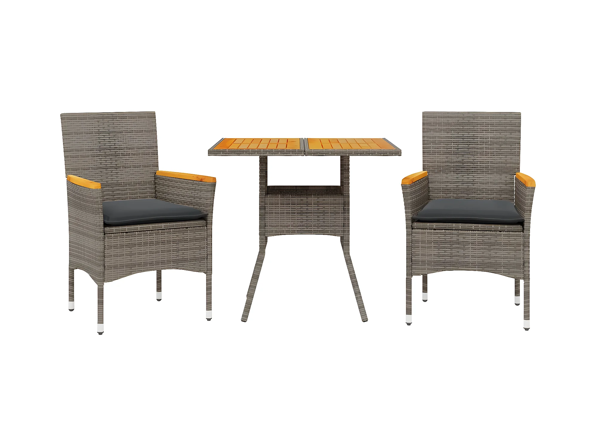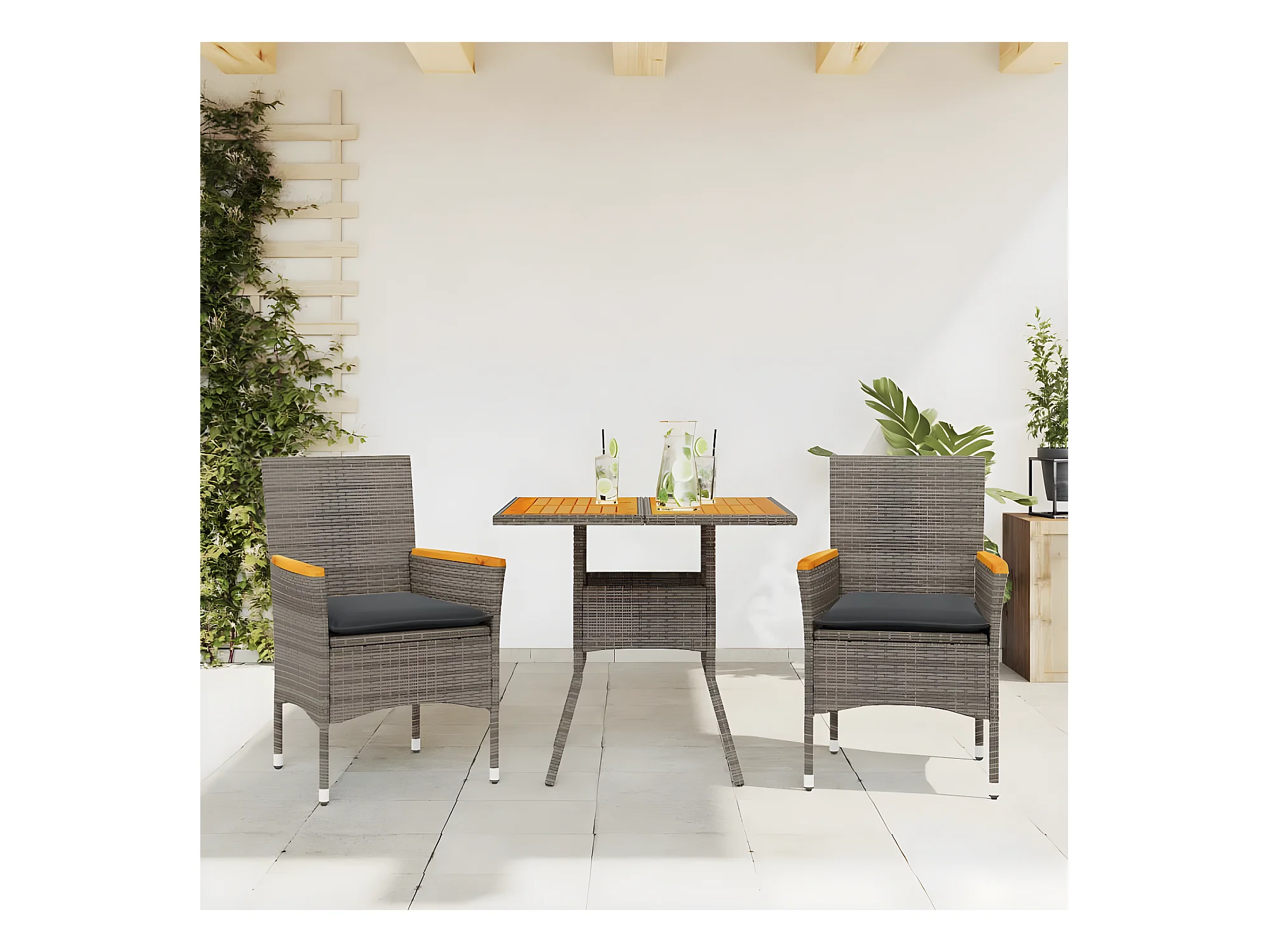 Ensemble à manger de jardin et coussins 3 pcs gris rotin acacia
