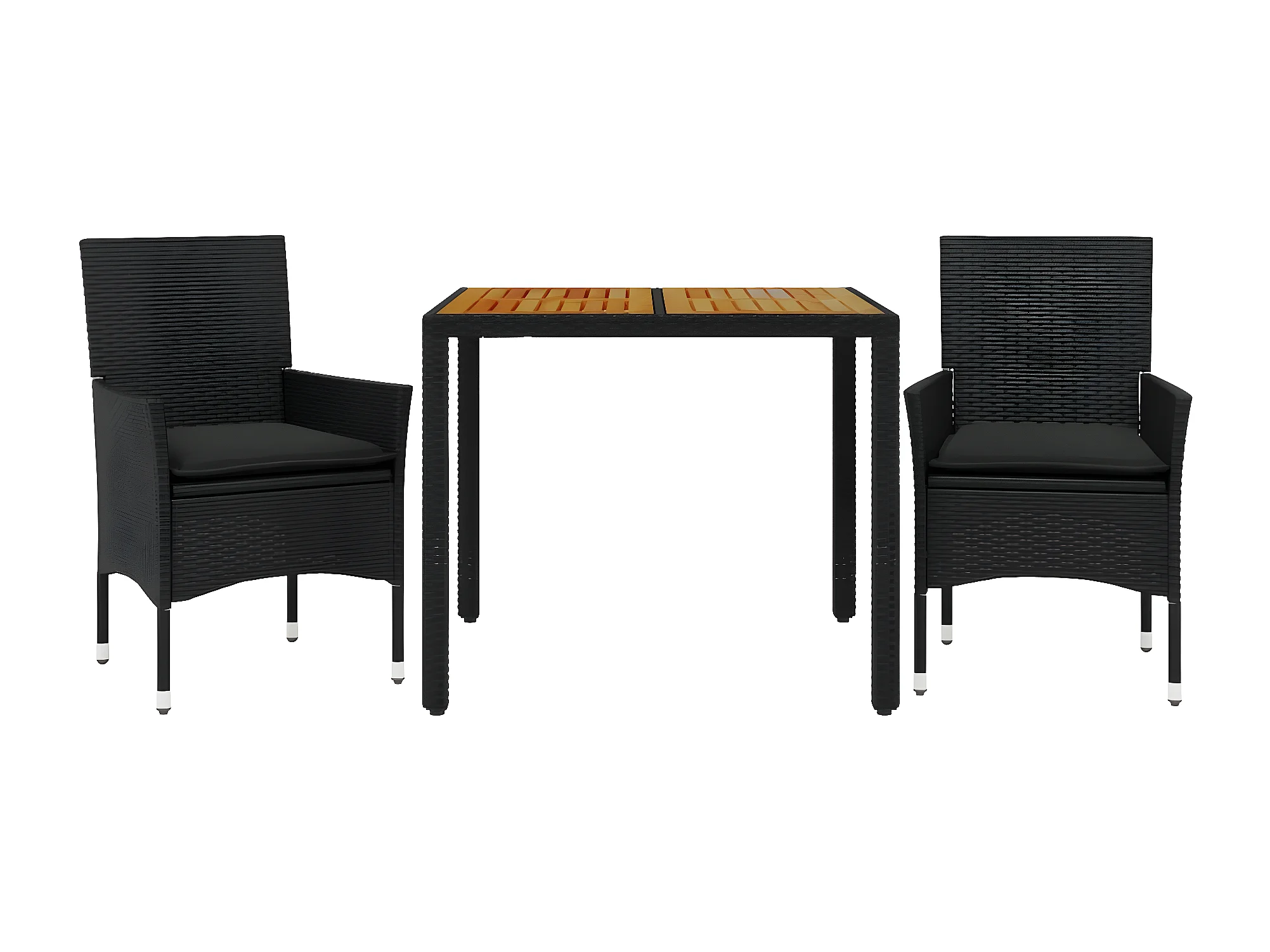 Ensemble à manger de jardin et coussins 3 pcs noir rotin acacia