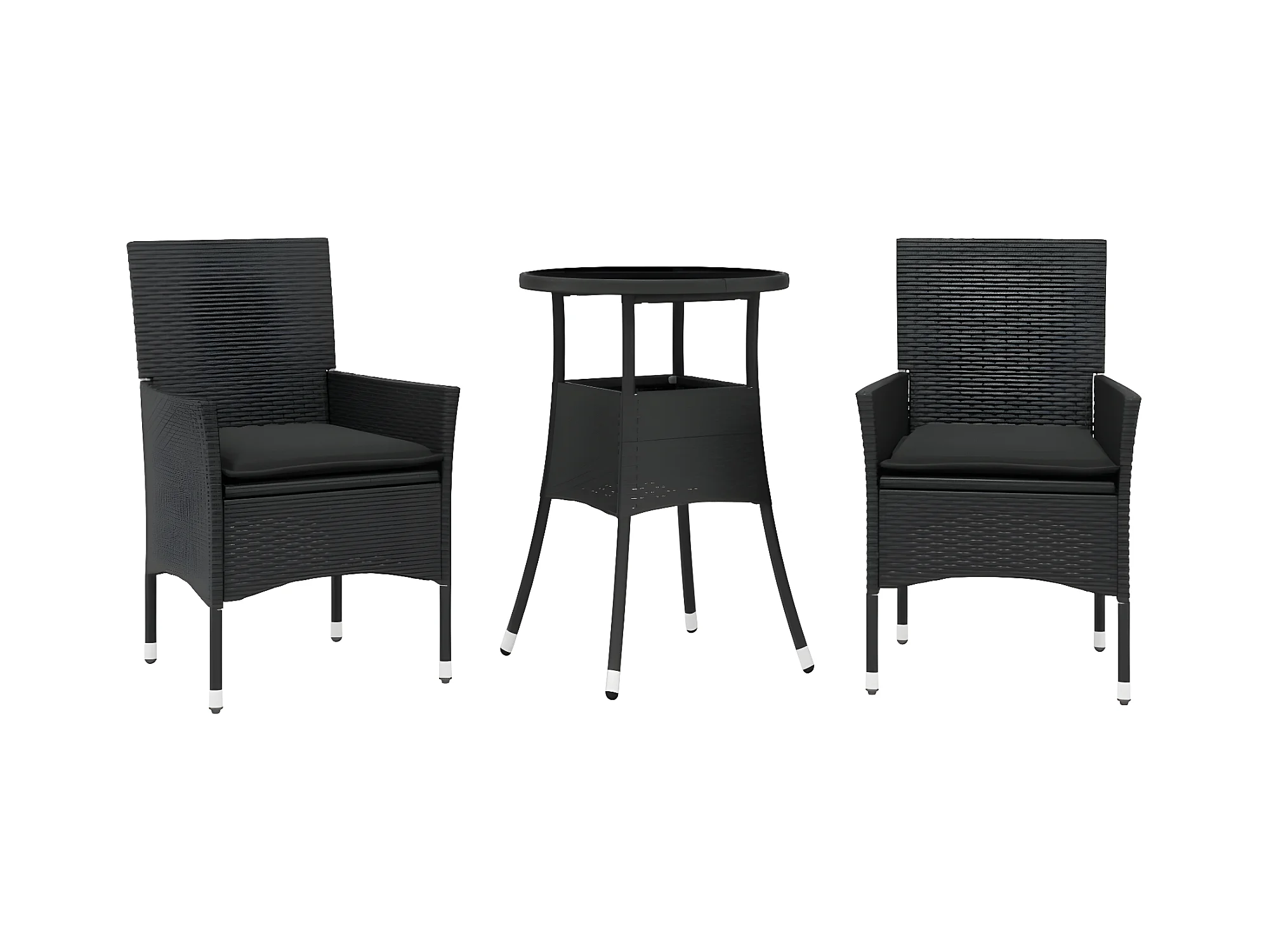 Ensemble à manger de jardin et coussins 3 pcs noir rotin verre
