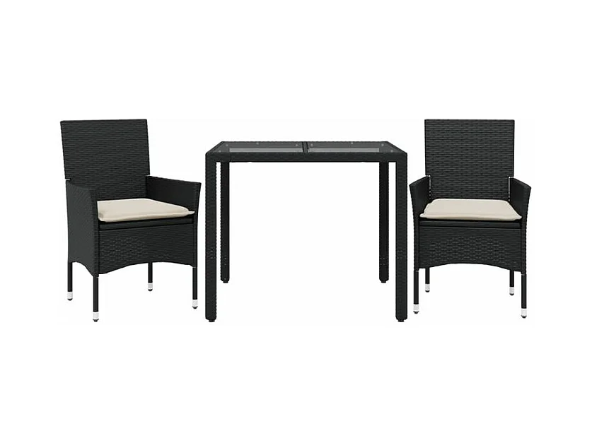 Ensemble à manger de jardin et coussins 3 pcs noir rotin verre