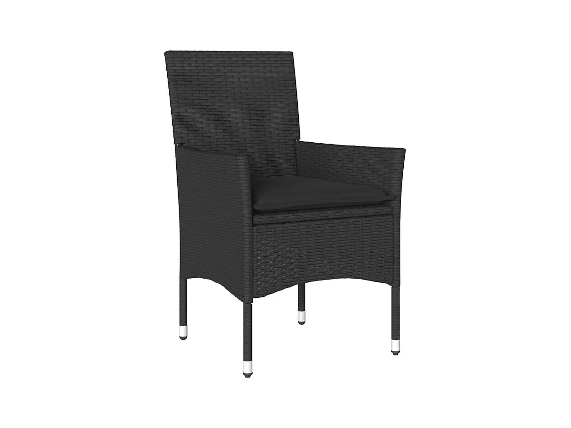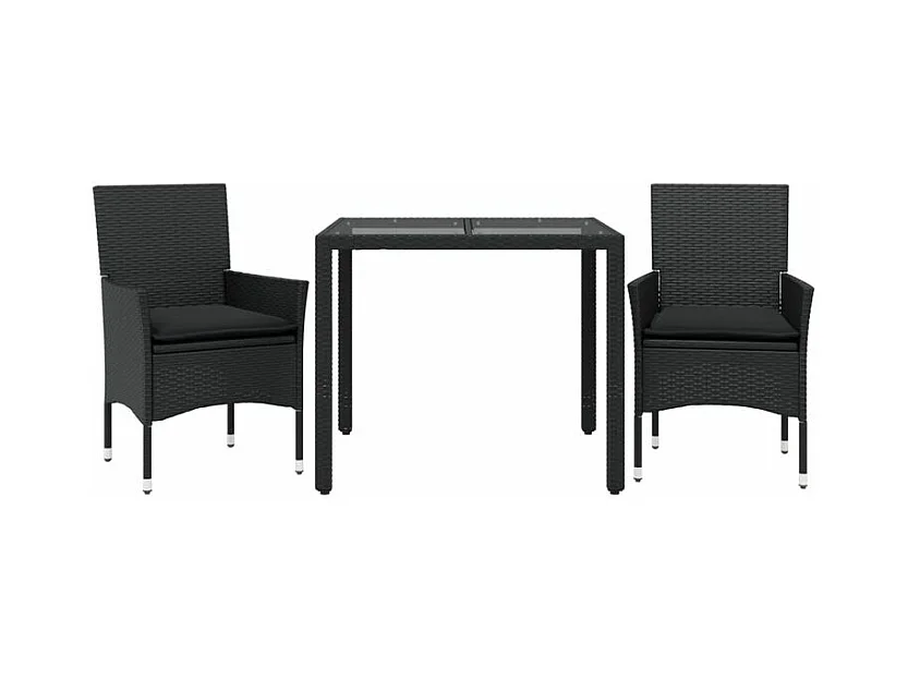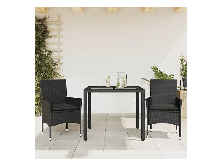Ensemble à manger de jardin et coussins 3 pcs noir rotin verre