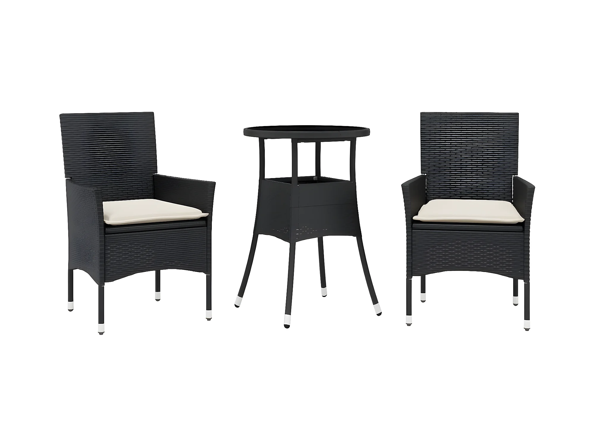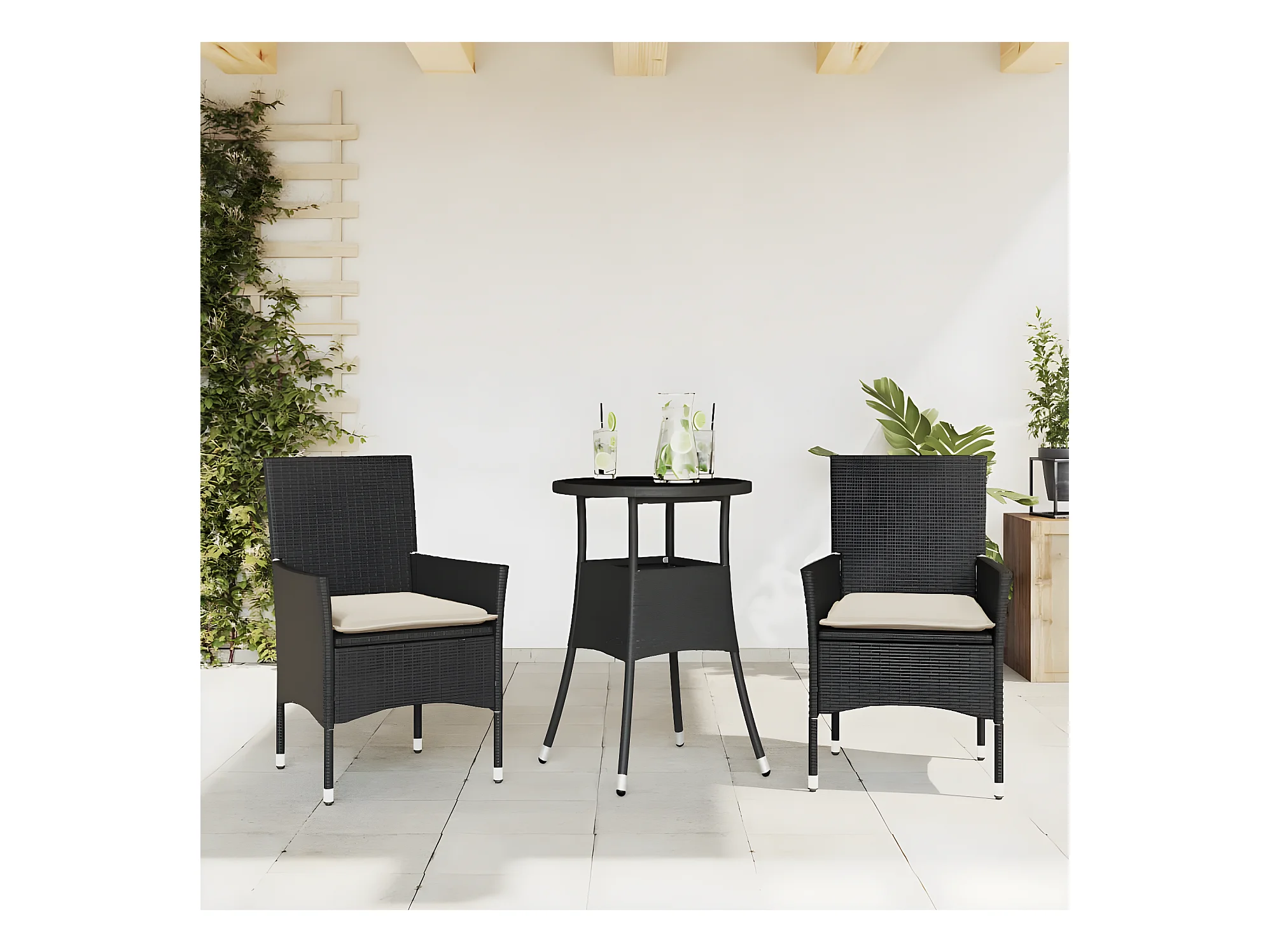 Ensemble à manger de jardin et coussins 3 pcs noir rotin verre