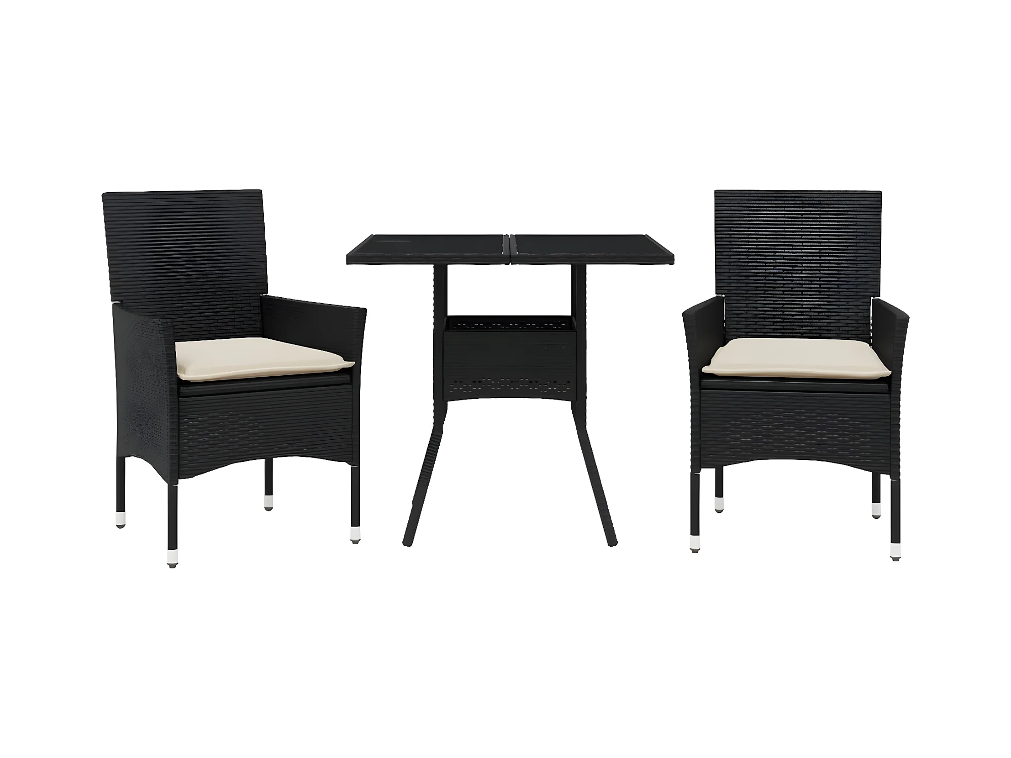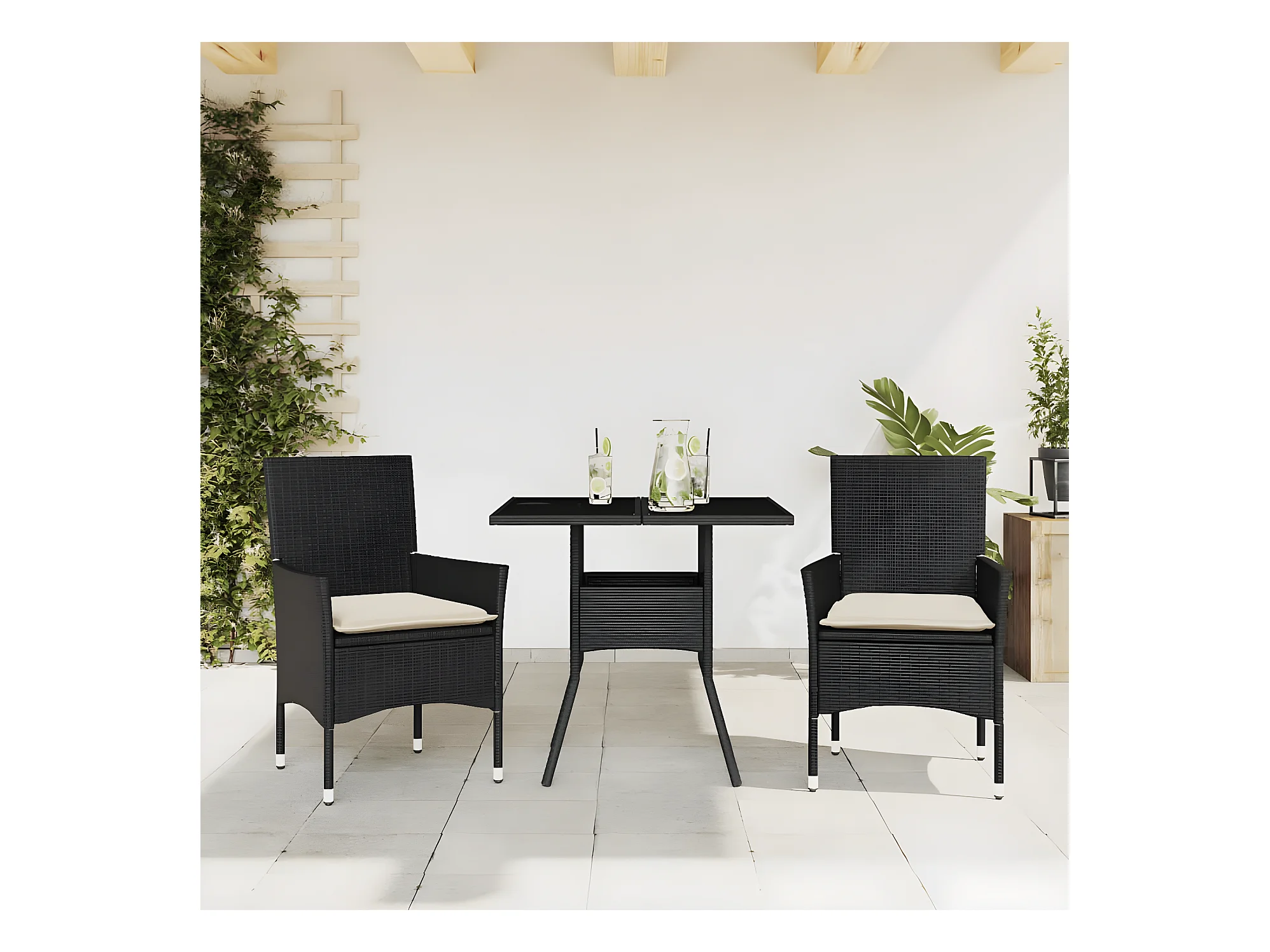 Ensemble à manger de jardin et coussins 3 pcs noir rotin verre