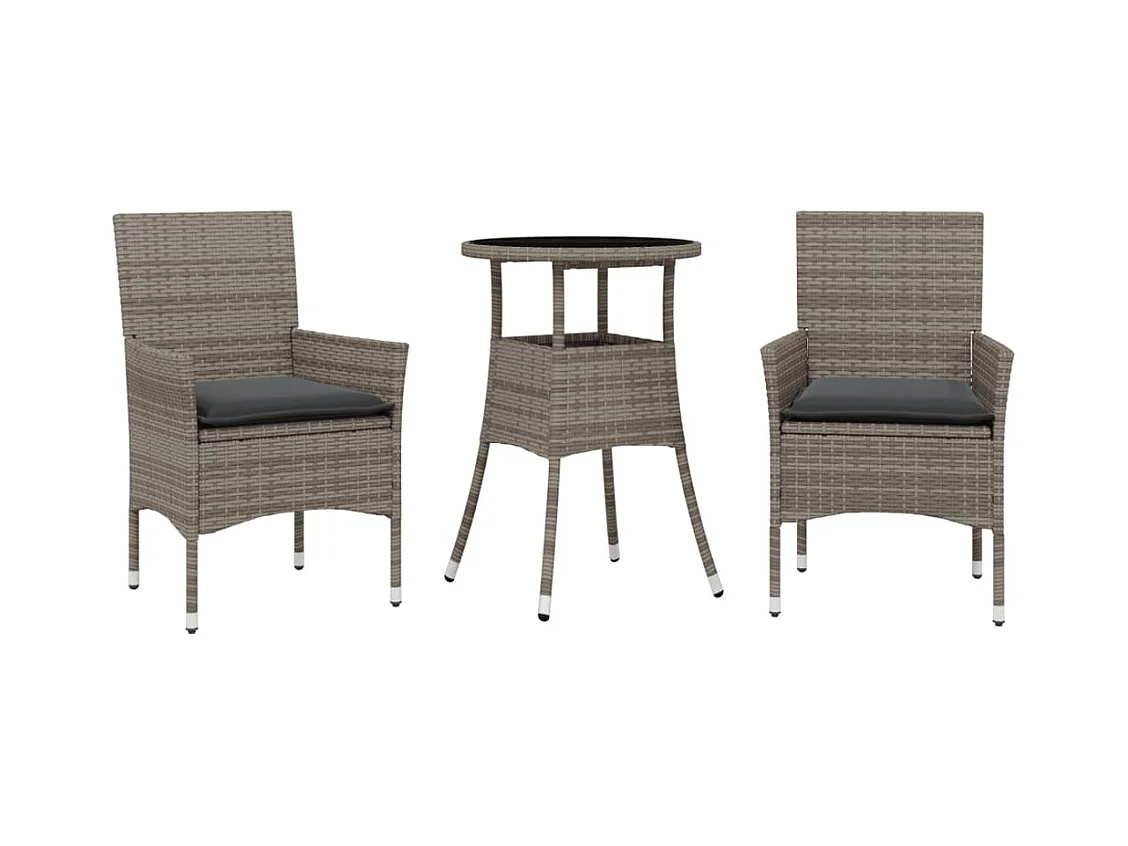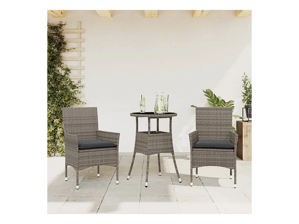 Ensemble à manger de jardin et coussins 3 pièces gris rotin verre