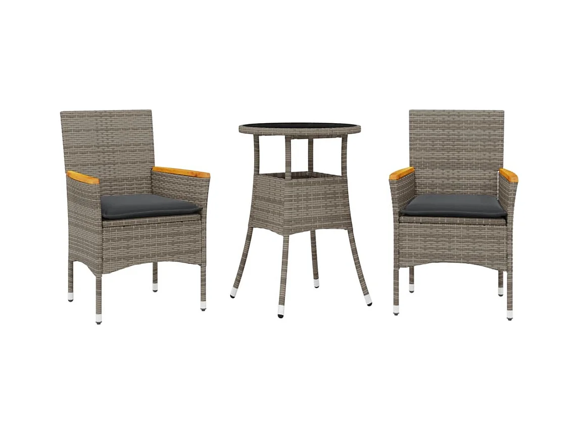 Ensemble à manger de jardin et coussins 3 pièces gris rotin verre