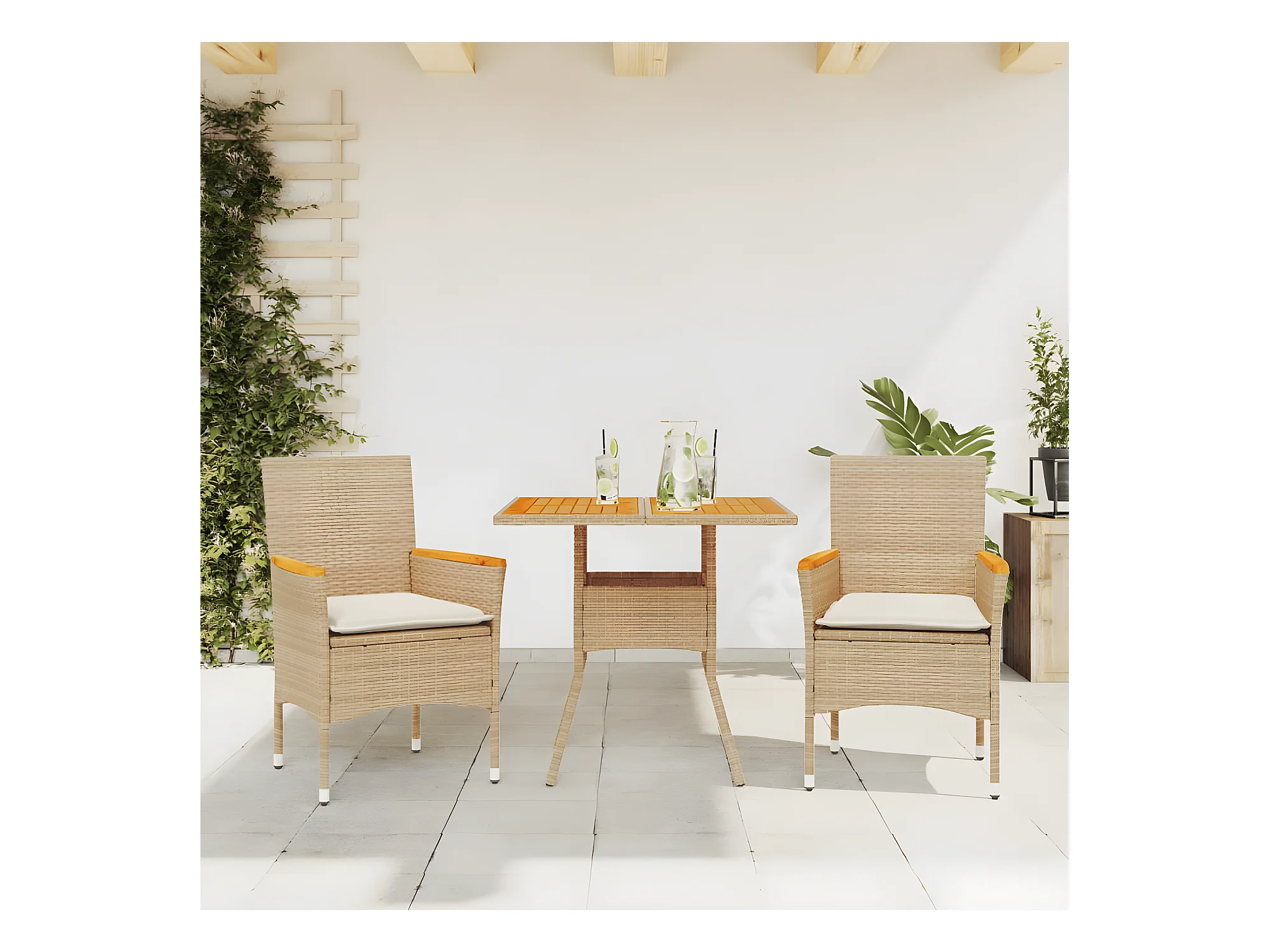 Ensemble à manger de jardin et coussins 3pcs beige rotin acacia