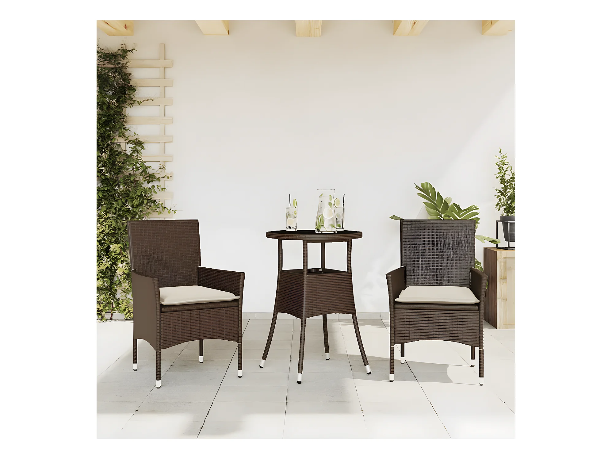 Ensemble à manger de jardin et coussins 3pcs marron rotin verre