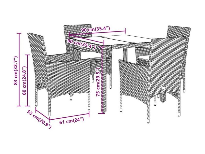 Ensemble à manger de jardin et coussins 5 pcs beige rotin verre